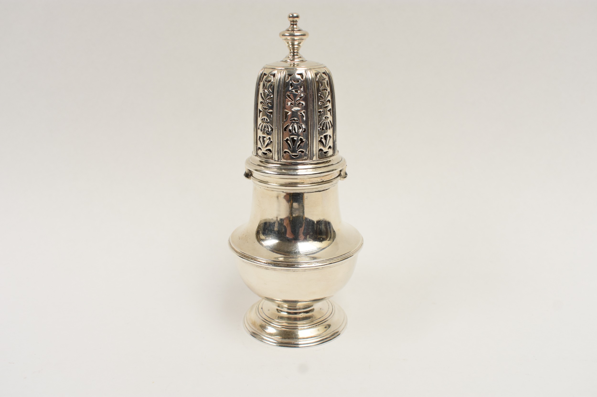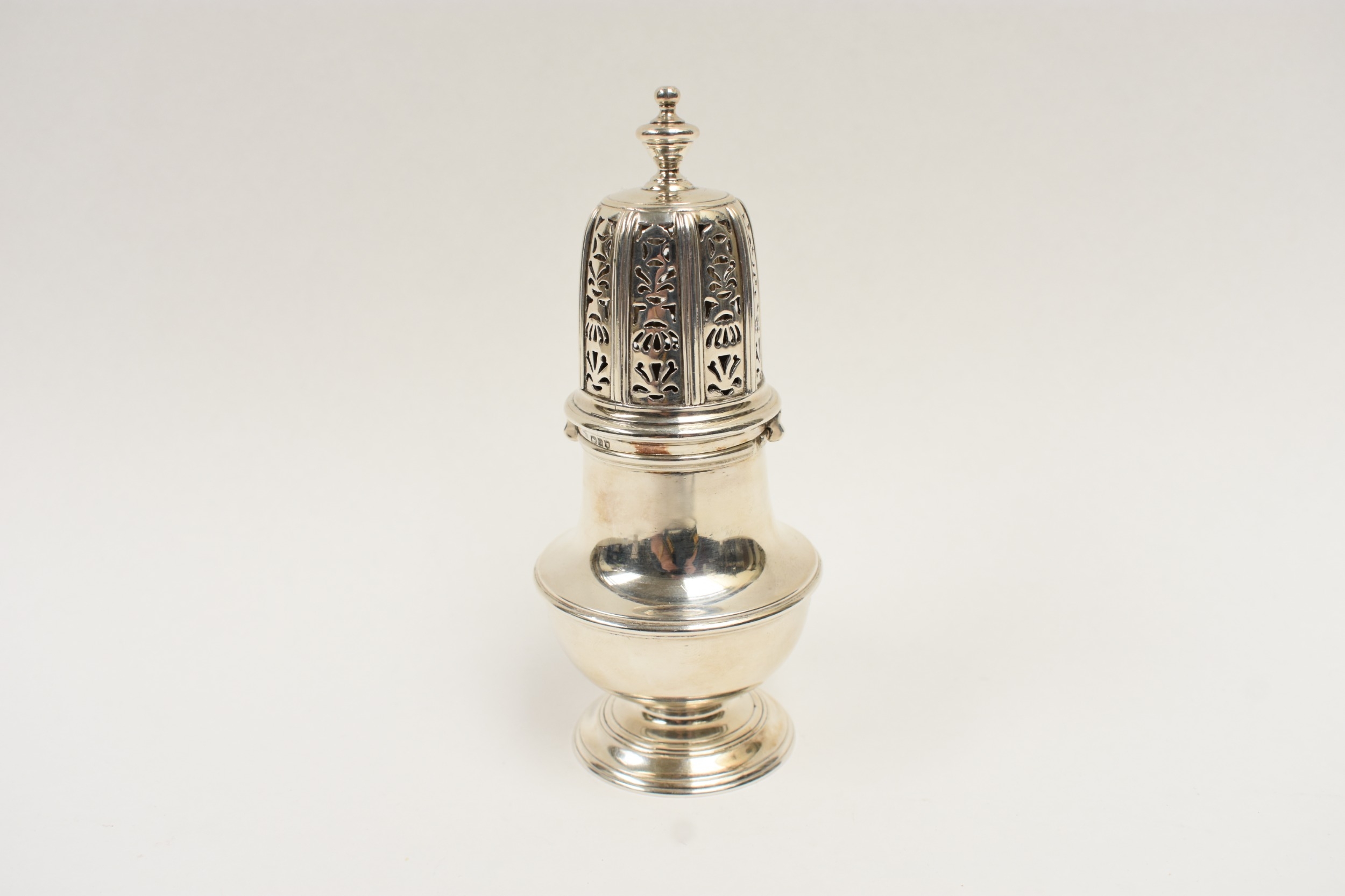 A William Comyns & Sons silver sugar caster, London 1909, 14.5cm tall. 222g