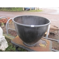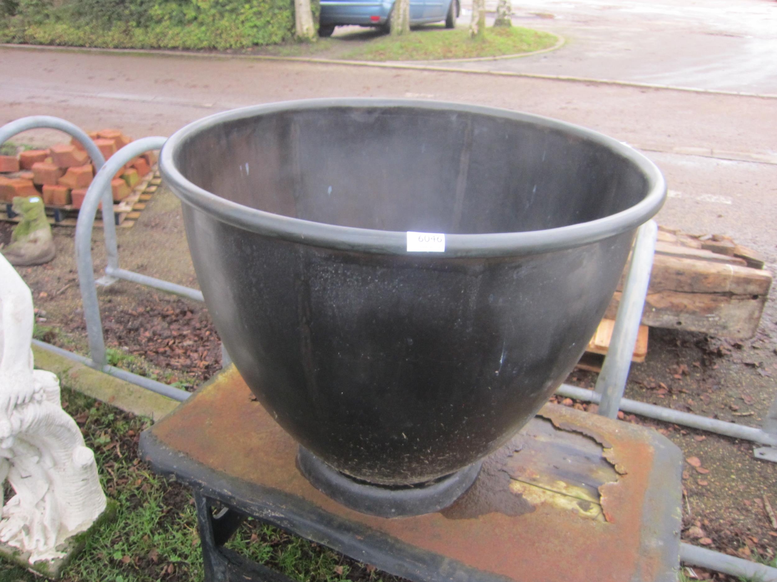 A brass dark patinated tapered planter with rolled rim, 76cm diameter x 61cm tall