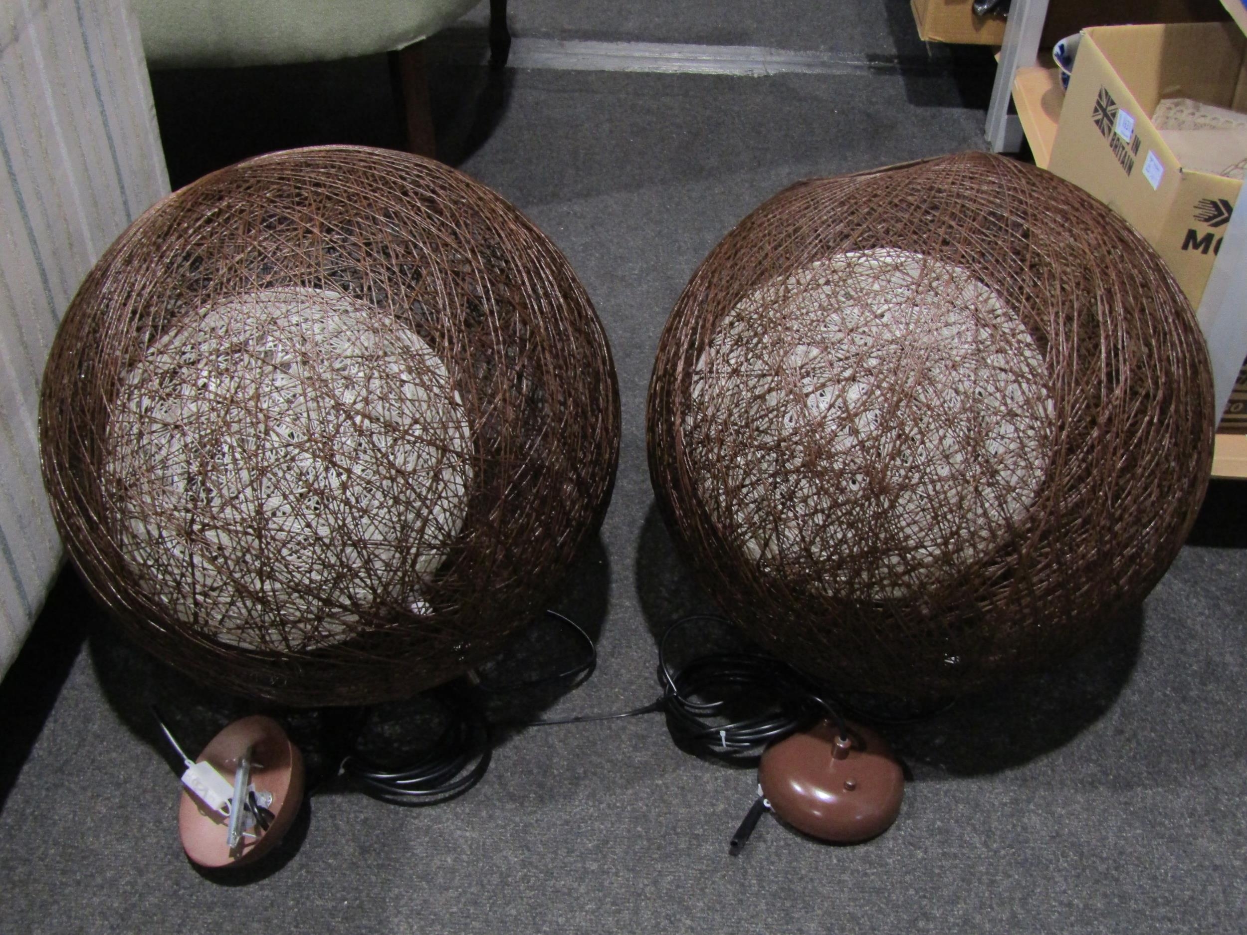 A pair of retro style ball form ceiling lights