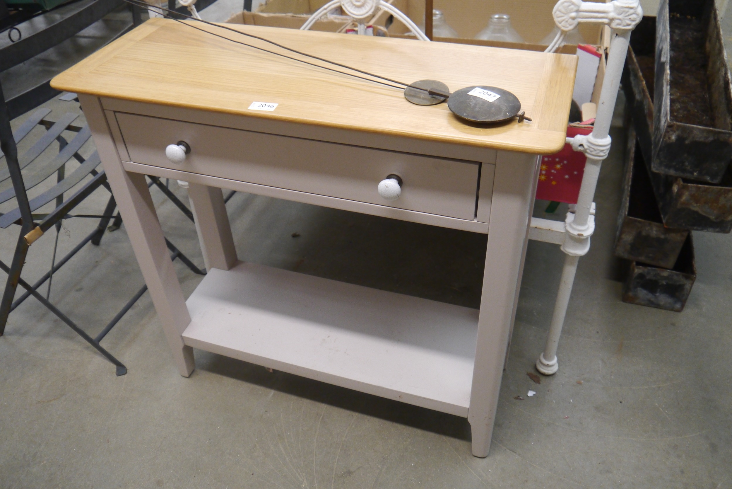 An oak side table on painted base