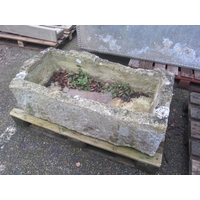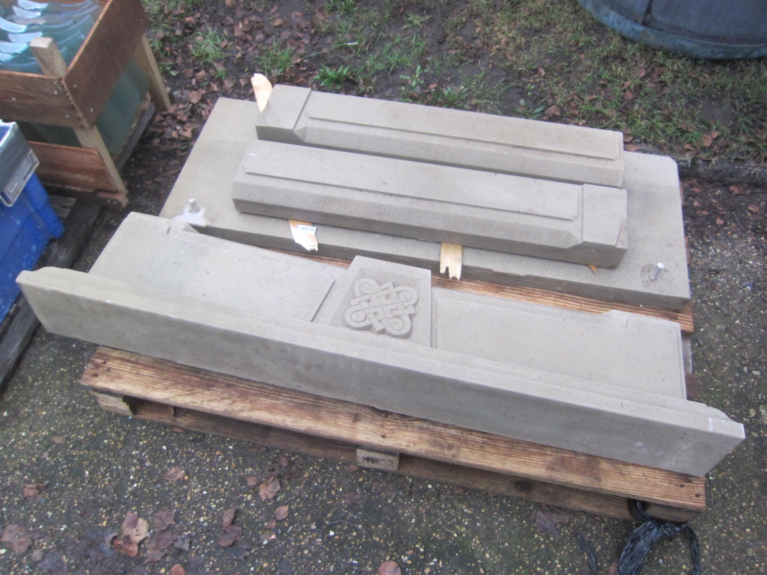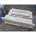 A York stone fire surround with scrolled detail to top, mantel 123cm wide, jambs 81cm tall, hearth 113cm x 41cm x 4cm