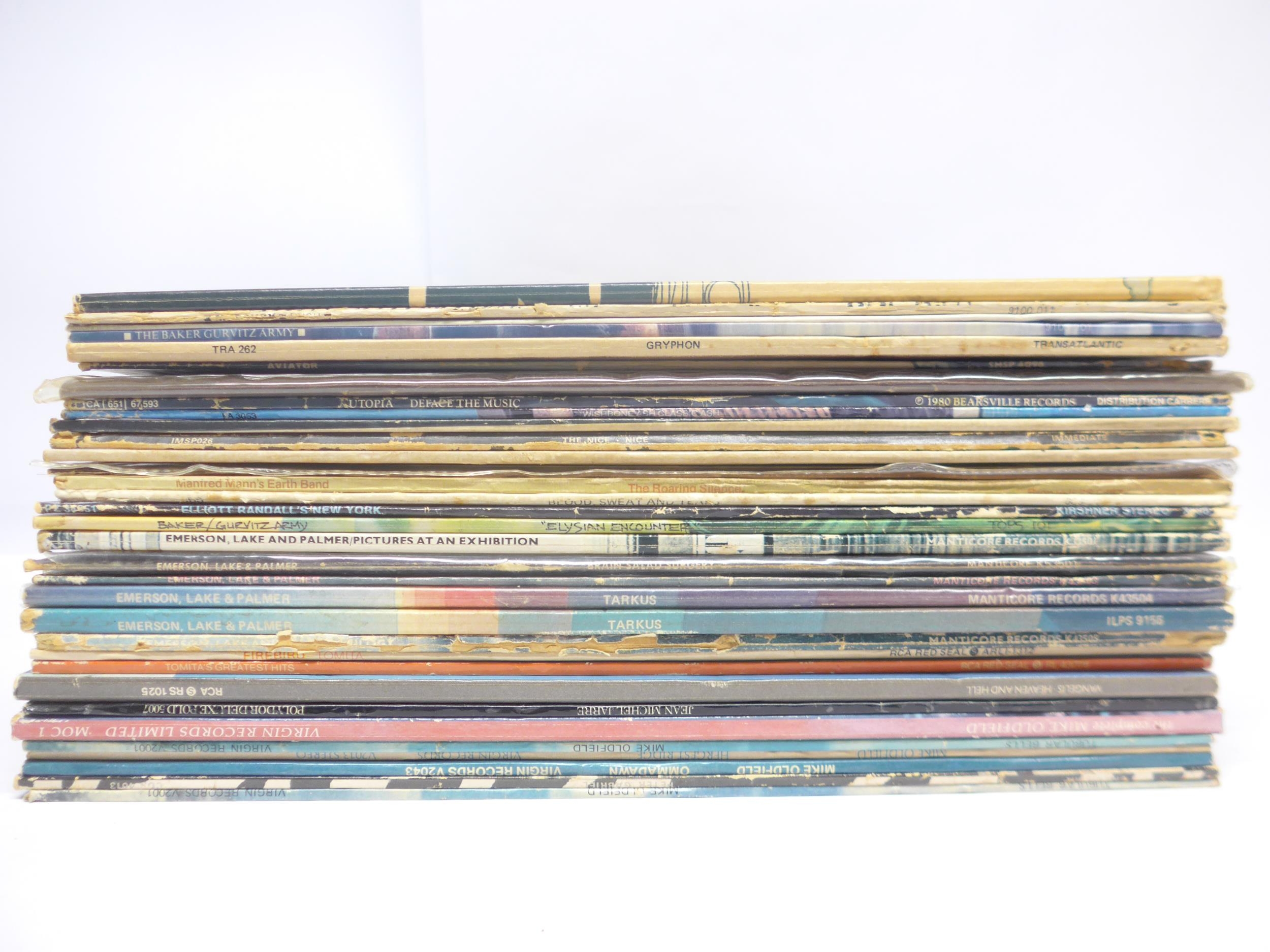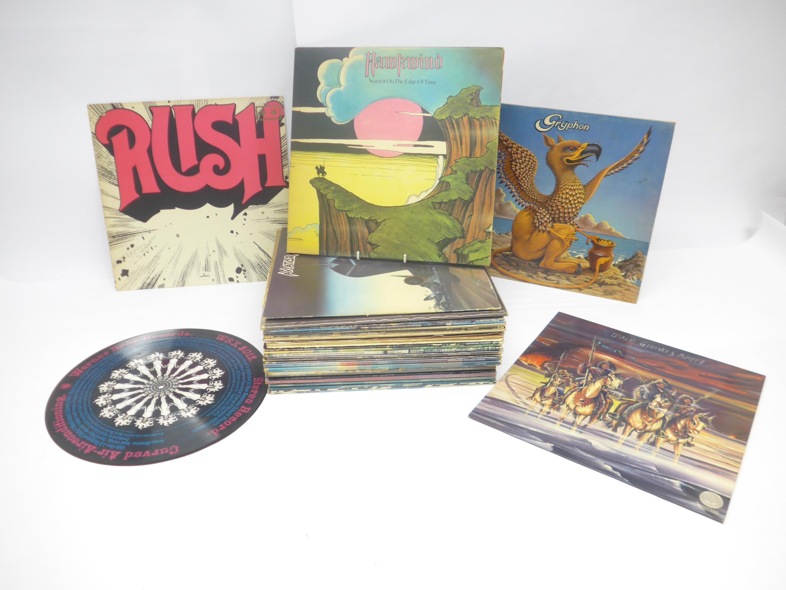 Prog / Art Rock / Classic Rock - A collection of thirty-three LPs including Hawkwind - 'Warrior On the Edge Of Time' original UK pressing in limited edition fold-out sleeve with printed inner (UAG 29766), Rush - 'Rush' (9100 011), Gryphon - 'Gryphon' in textured gatefold sleeve (TRA 262), Jethro Tull, Aviator, Utopia, The Baker Gurvitz Army, The Nice, Emerson Lake & Palmer, Elliott Randall, Curved Air, Blood Sweat & Tears, Manfred Mann's Earth Band, Focus, Wishbone Ash, Mike Oldfield, Peter Gabriel, Jean Micel Jarre, Vangelis, Tomita (33, vinyl and sleeves generally VG-VG+)