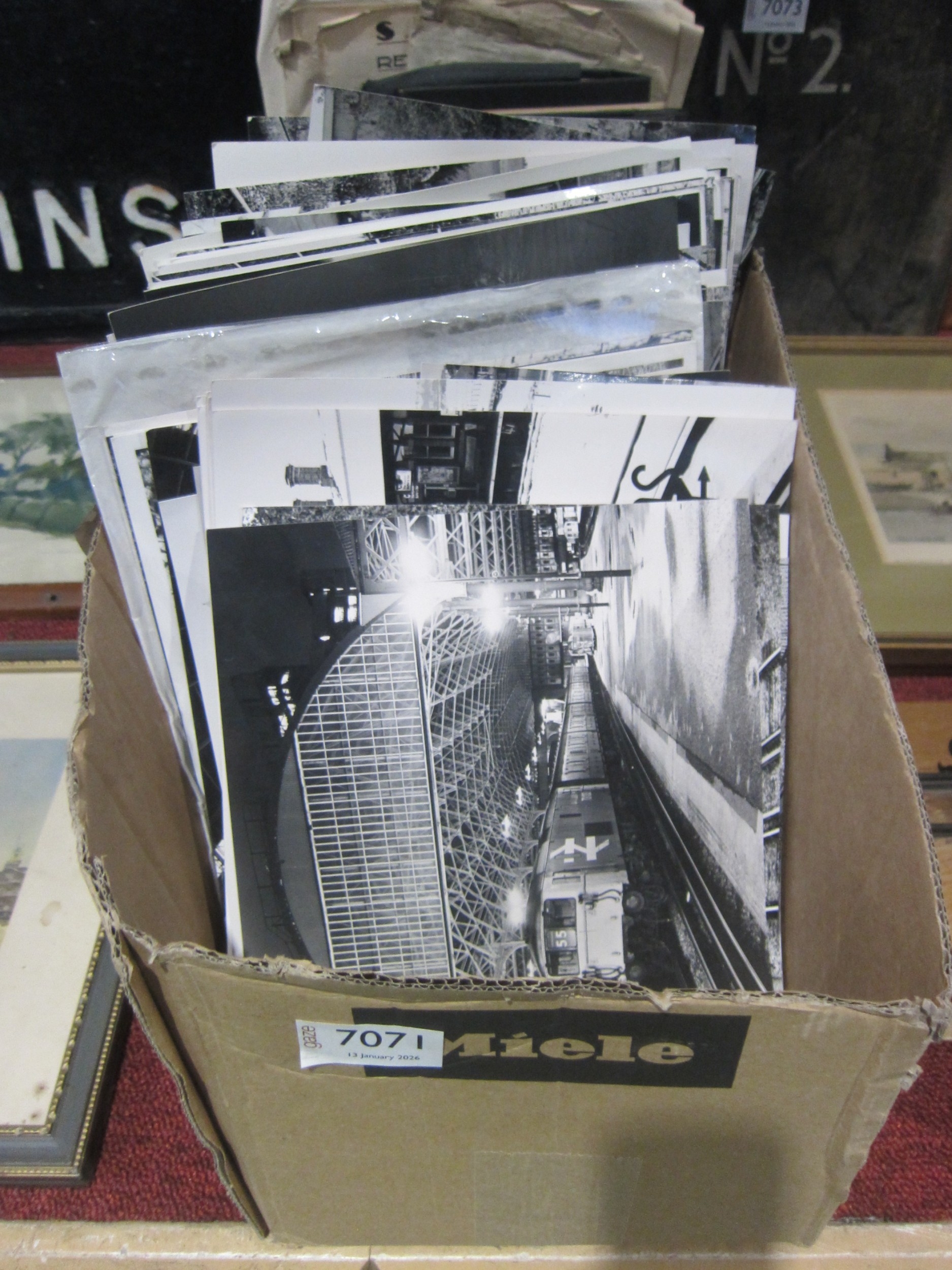 A box containing 600+ black and white photographs by photographer Brian Beer depicting mostly diesel traction, dating from the 80s, 90s and 2000's, information on the backs
