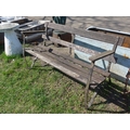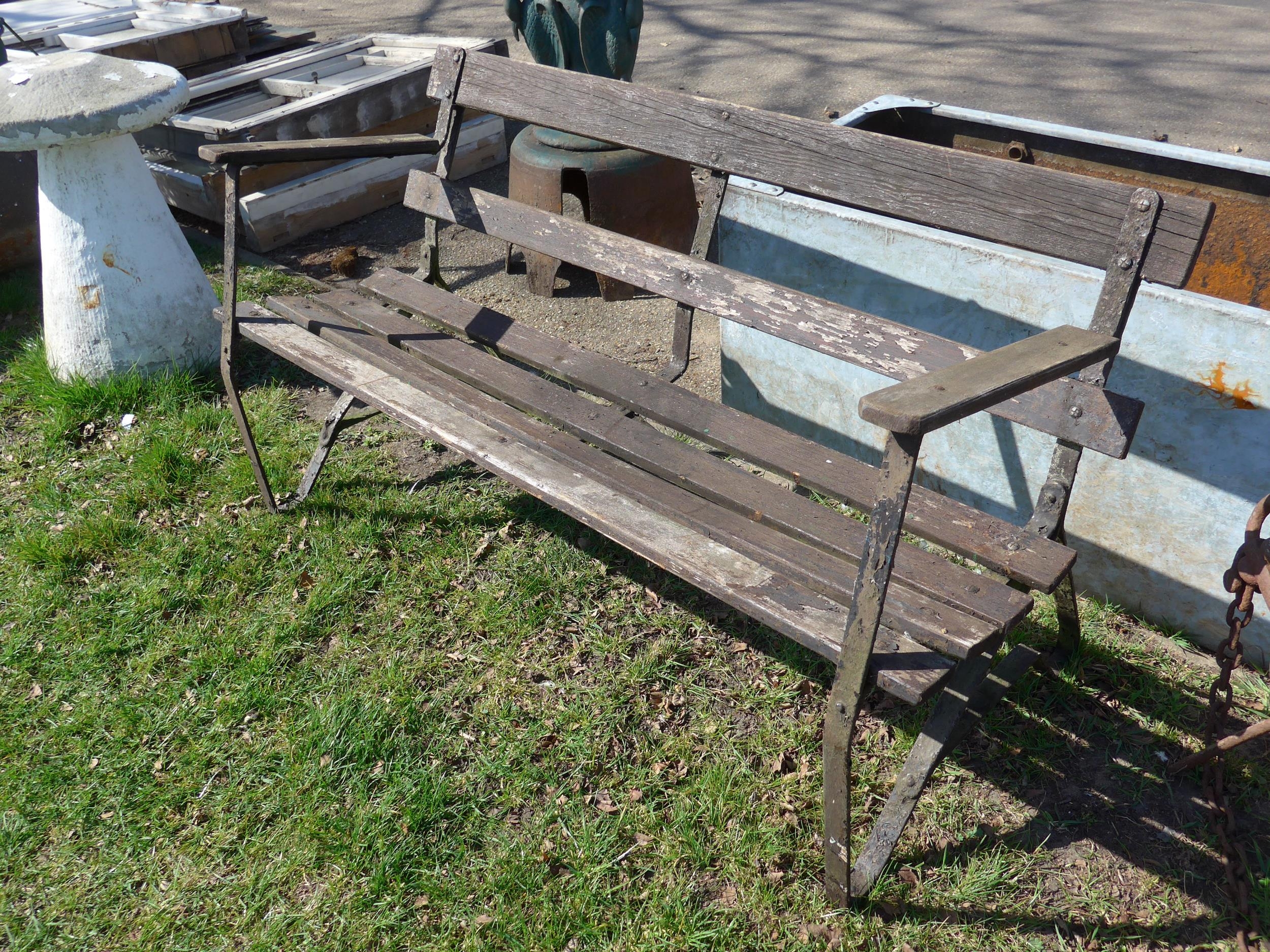 An iron and wooden slat garden bench, approx 131cm wide