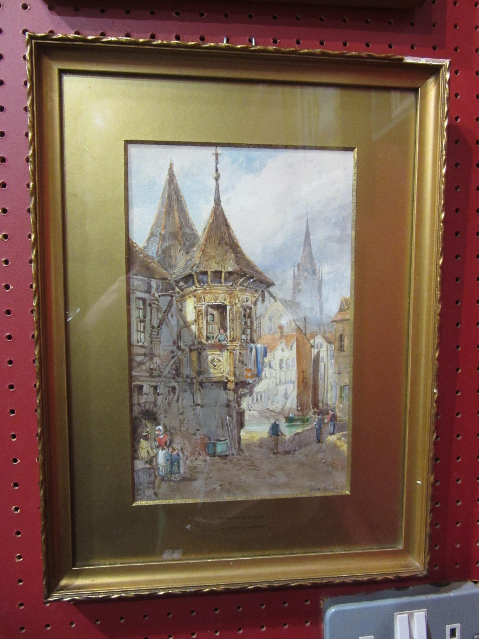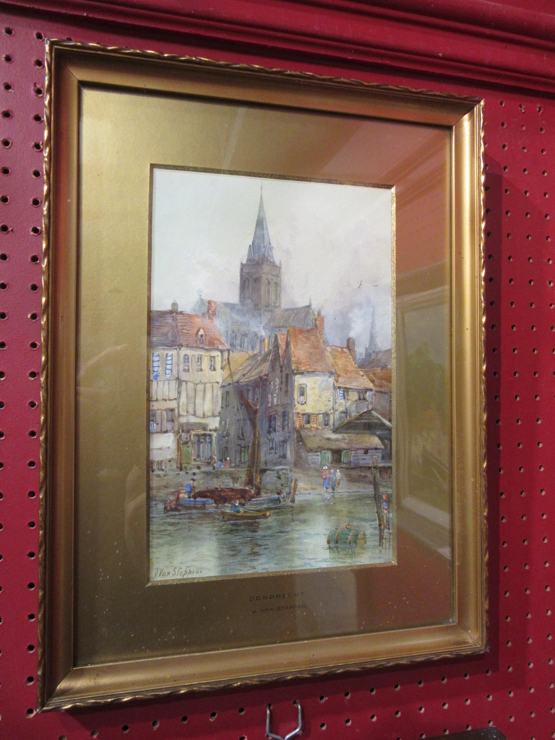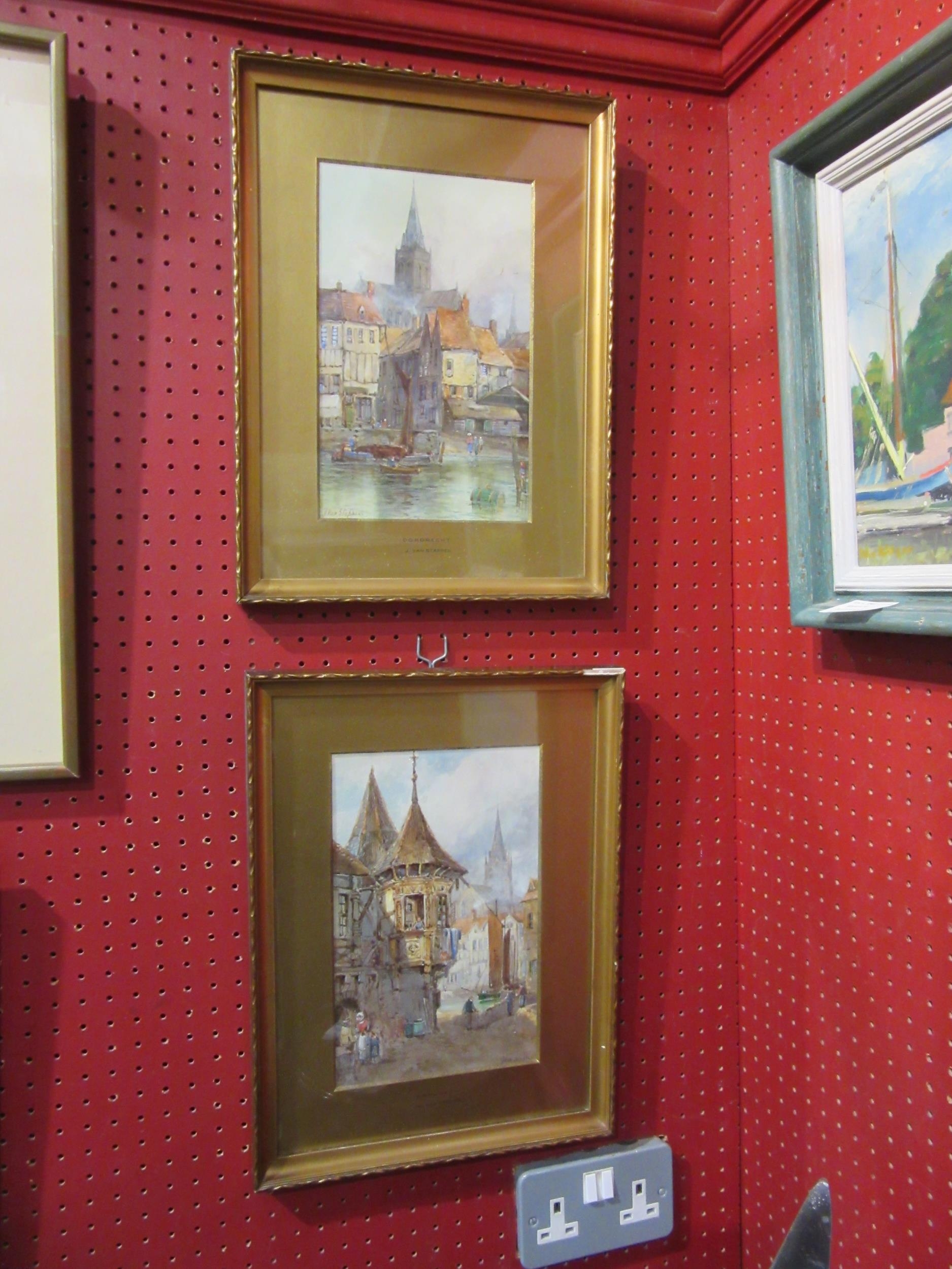 J. VAN STAPPEN (Flemish/Dutch, 19th Century): Two watercolours, 'Dordrecht' and 'Braubach' gilt framed and glazed, 27cm x 17cm image size
