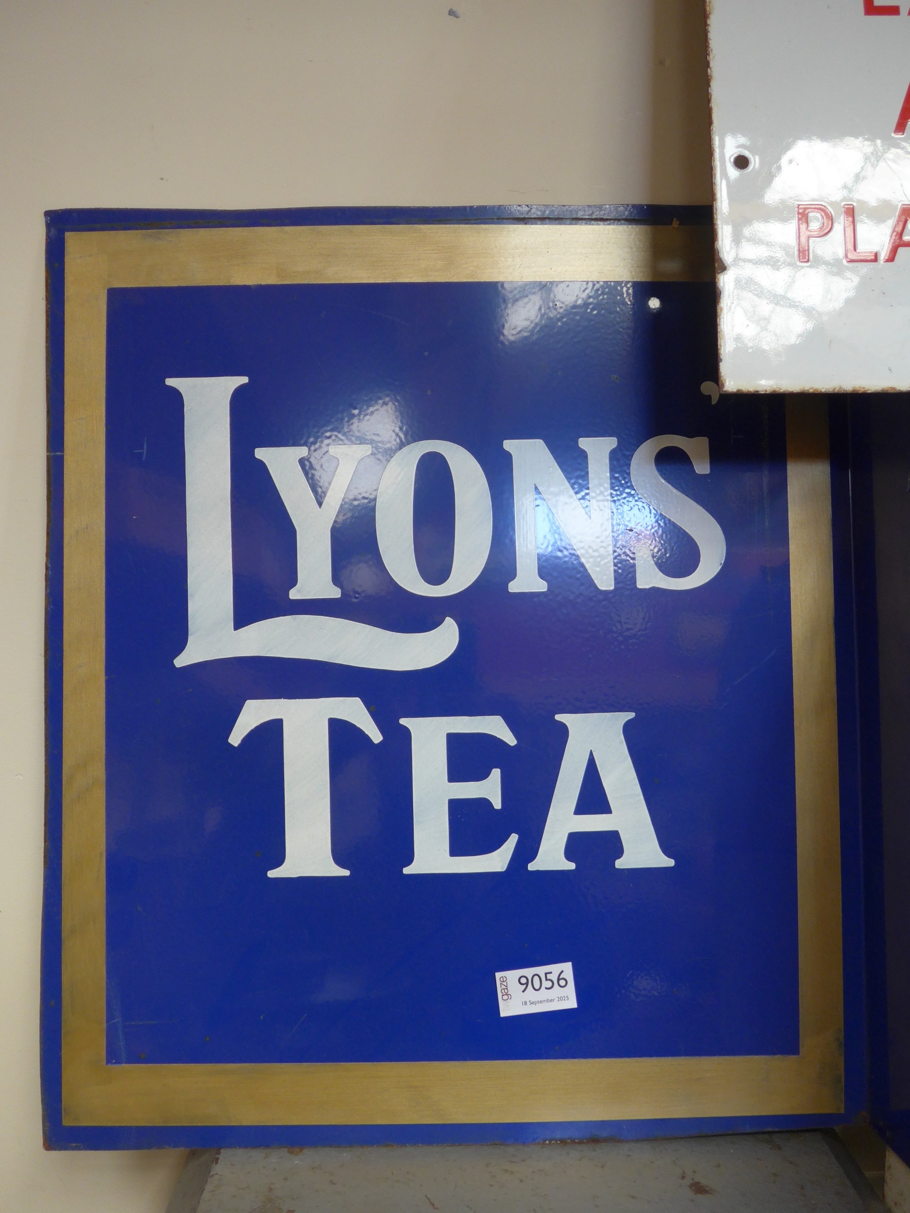 A Lyons tea double sided sign, 41cm x 47cm, reproduction