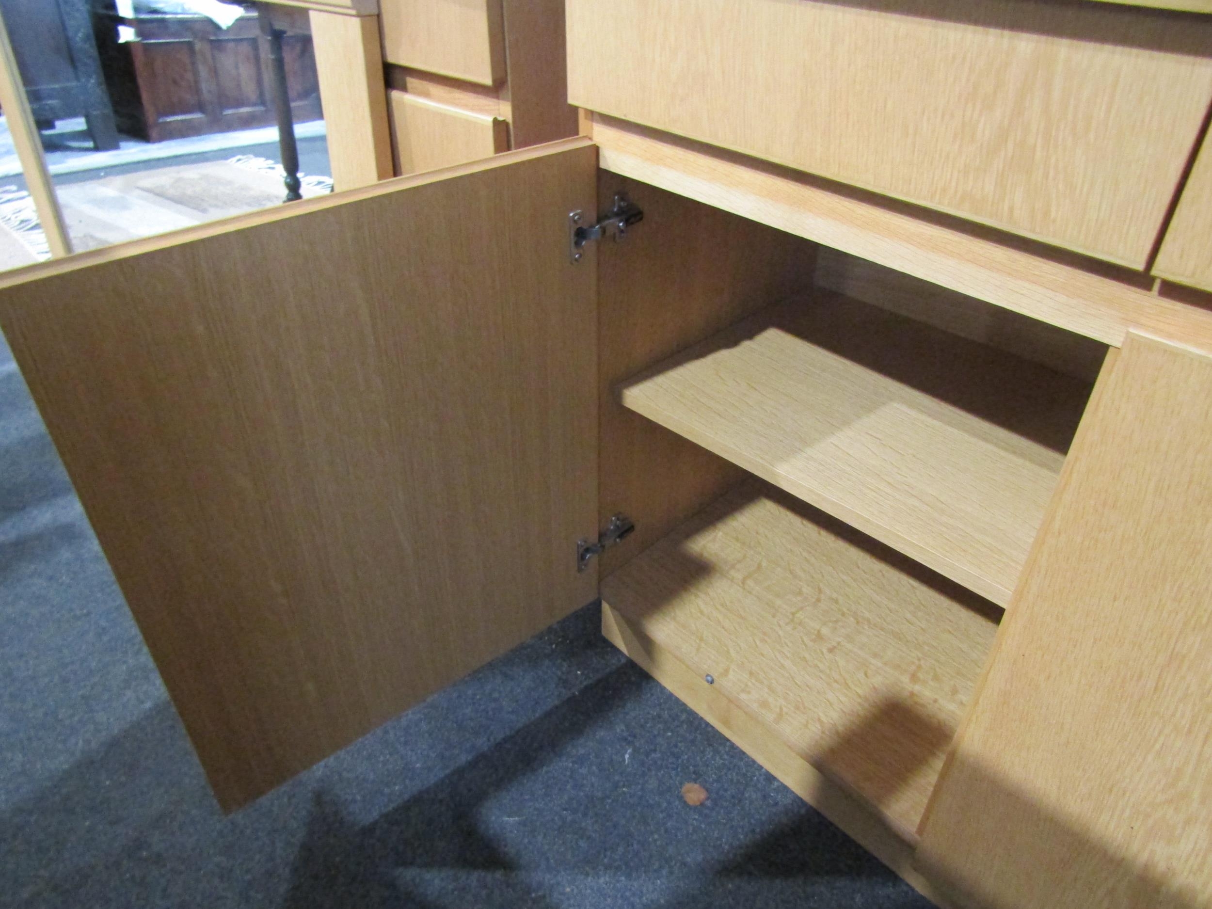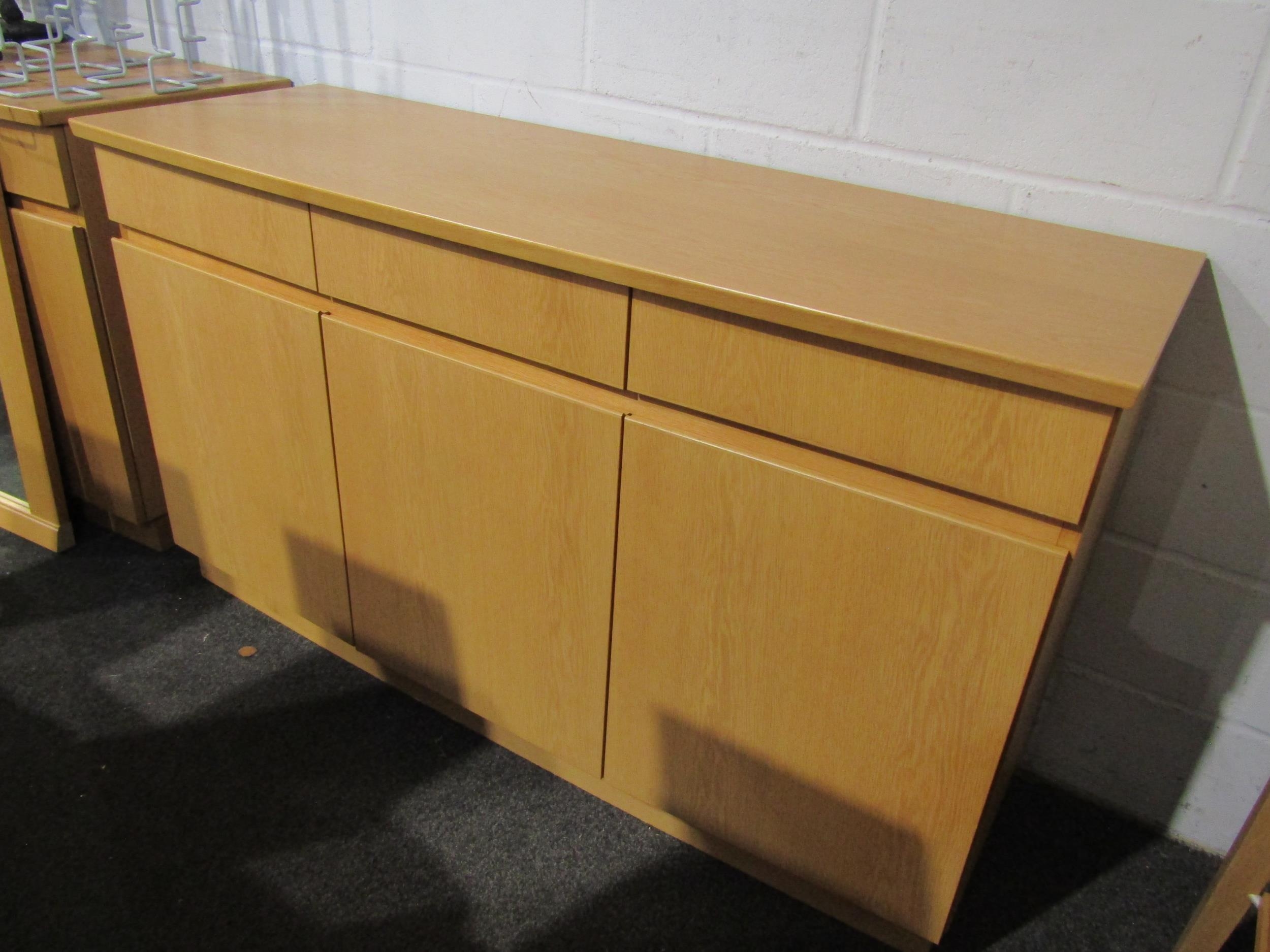 An oak sideboard with three drawers and three door cupboard, 86cm tall x 150cm wide x 52cm deep