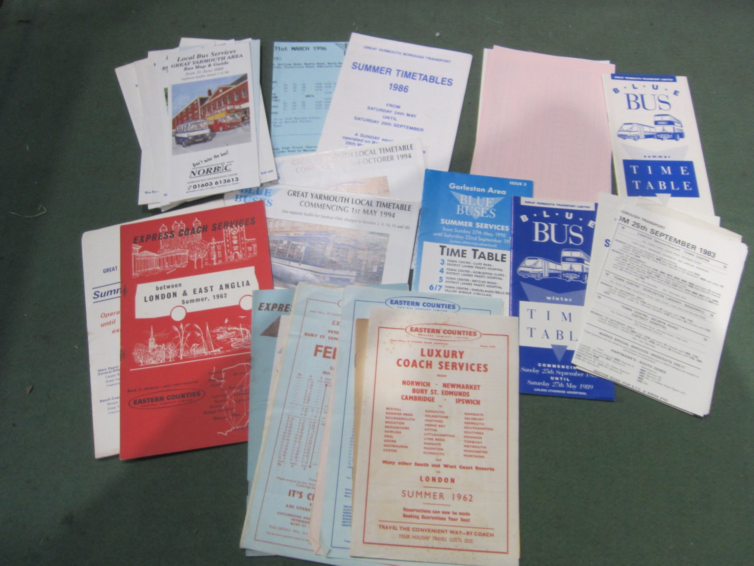 A quantity of Eastern Counties Omnibus Co. and Great Yarmouth timetable leaflets
