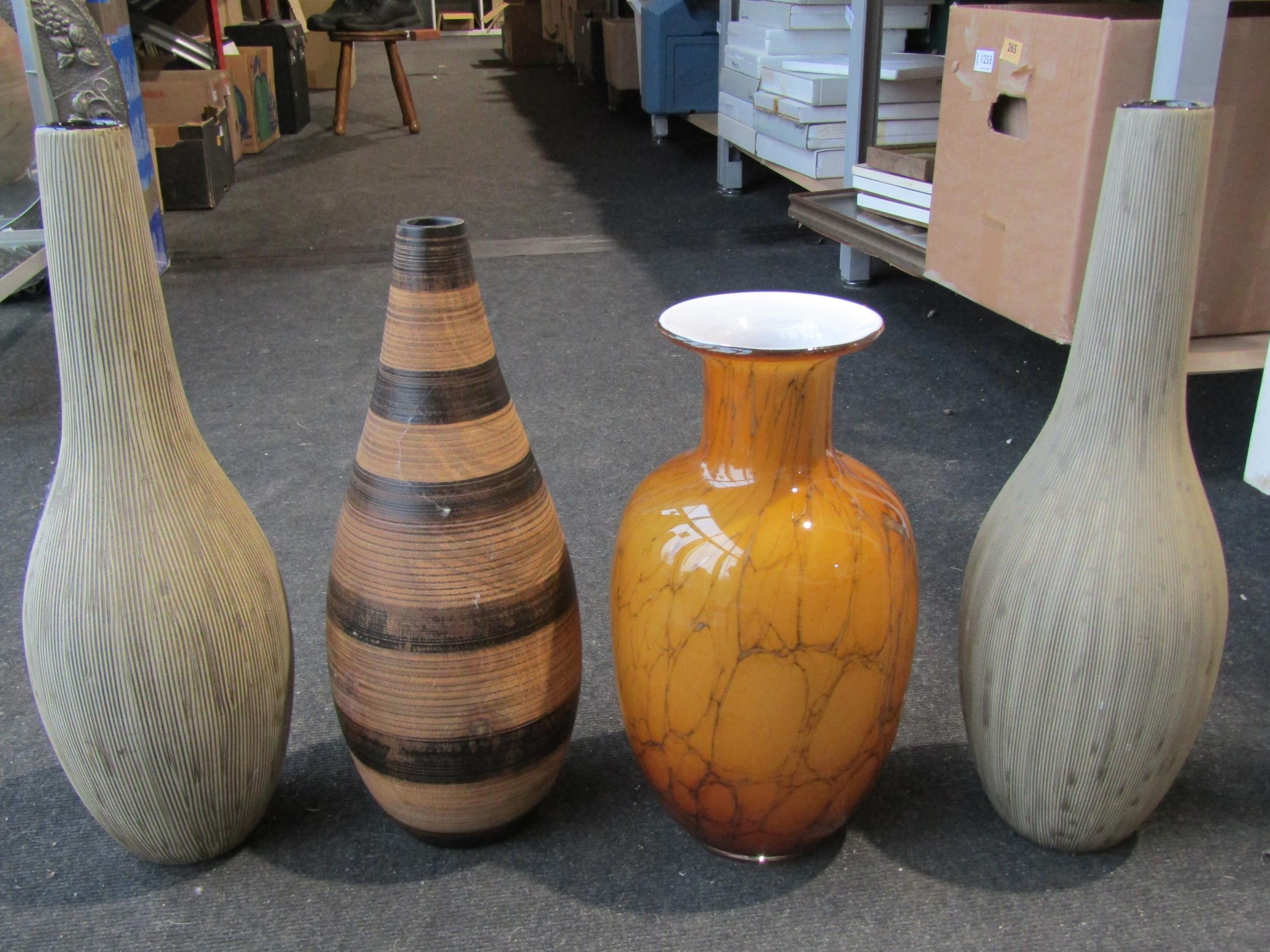 Four various modern decorative vases, one amber coloured, pa...