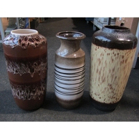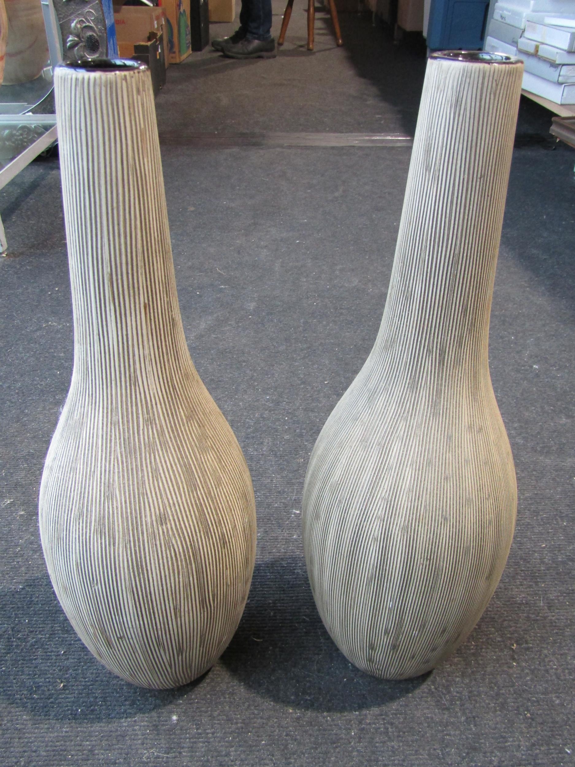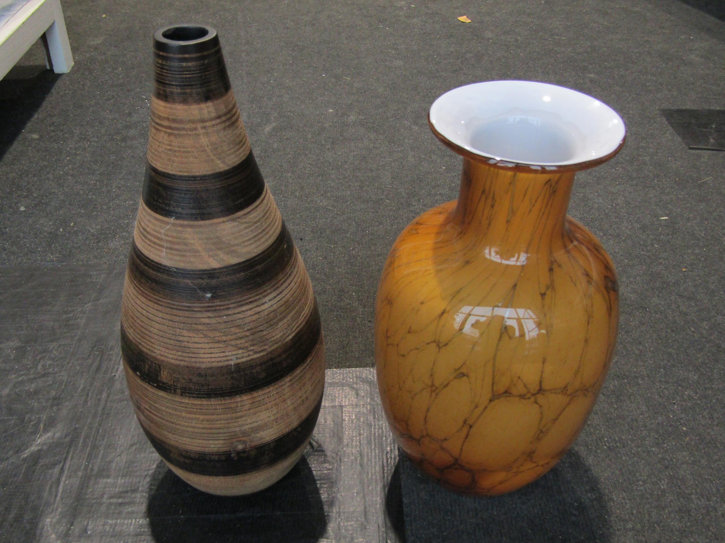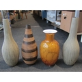Four various modern decorative vases, one amber coloured, pair 45cm tall