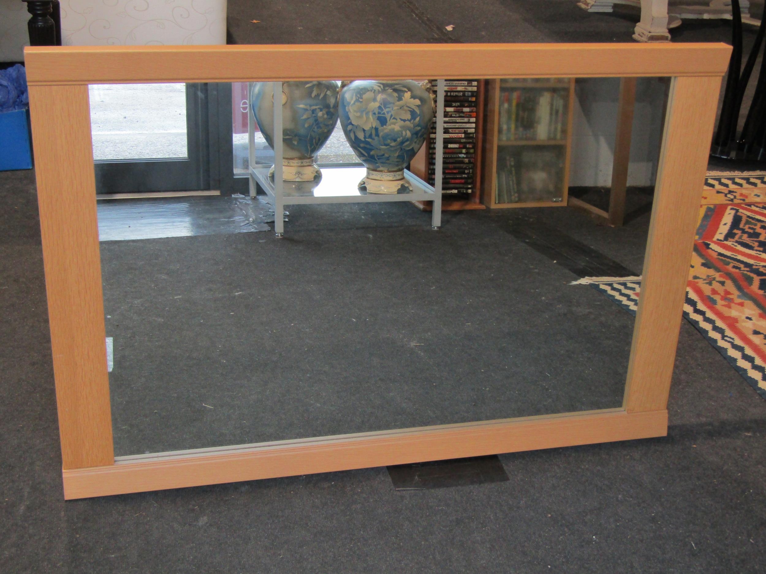 An oak framed wall hanging mirror, 80cm x 120cm