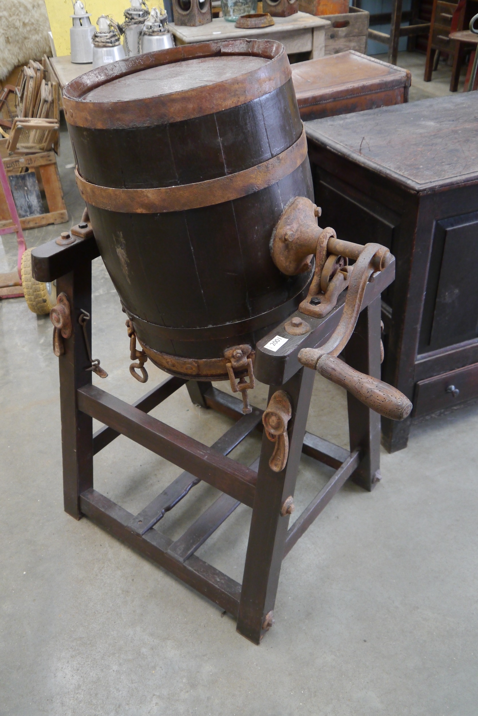 A 19th Century oak and cast iron rotary butter churn
