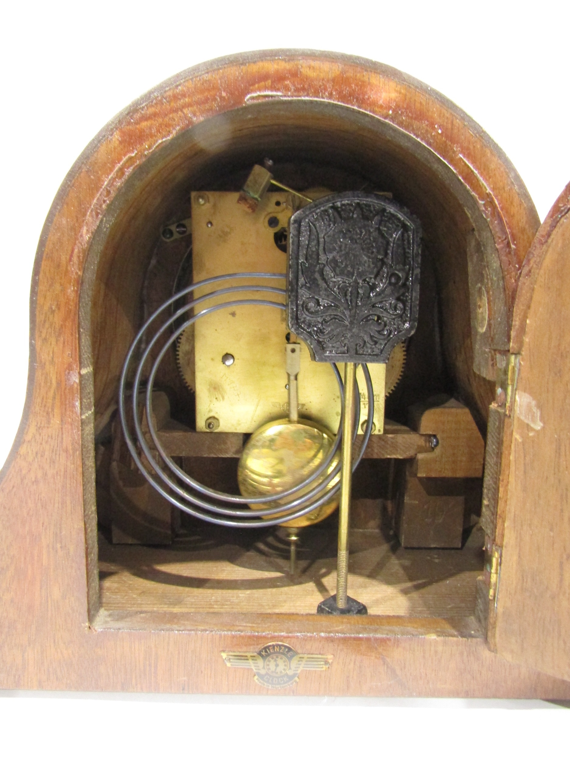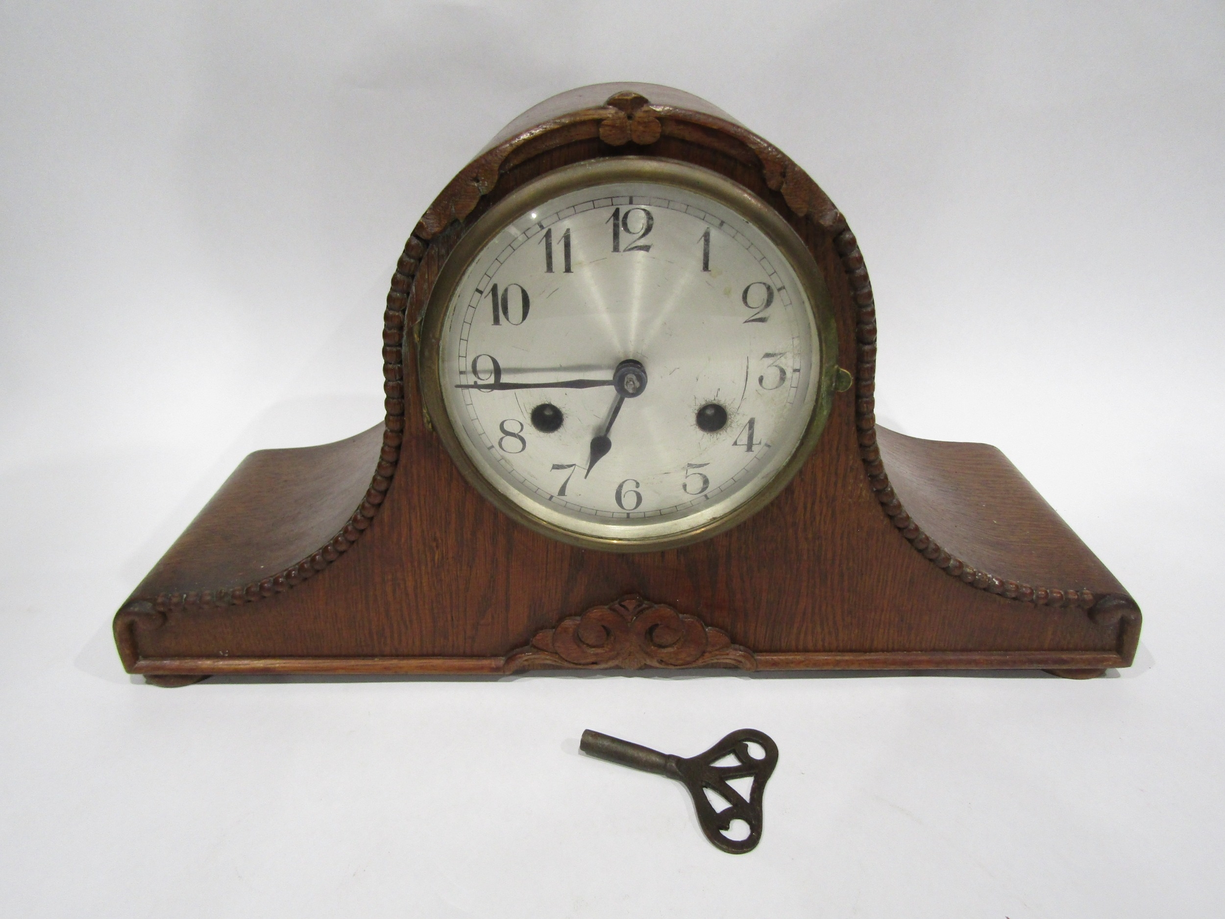 A Napoleon hat mantel clock with key