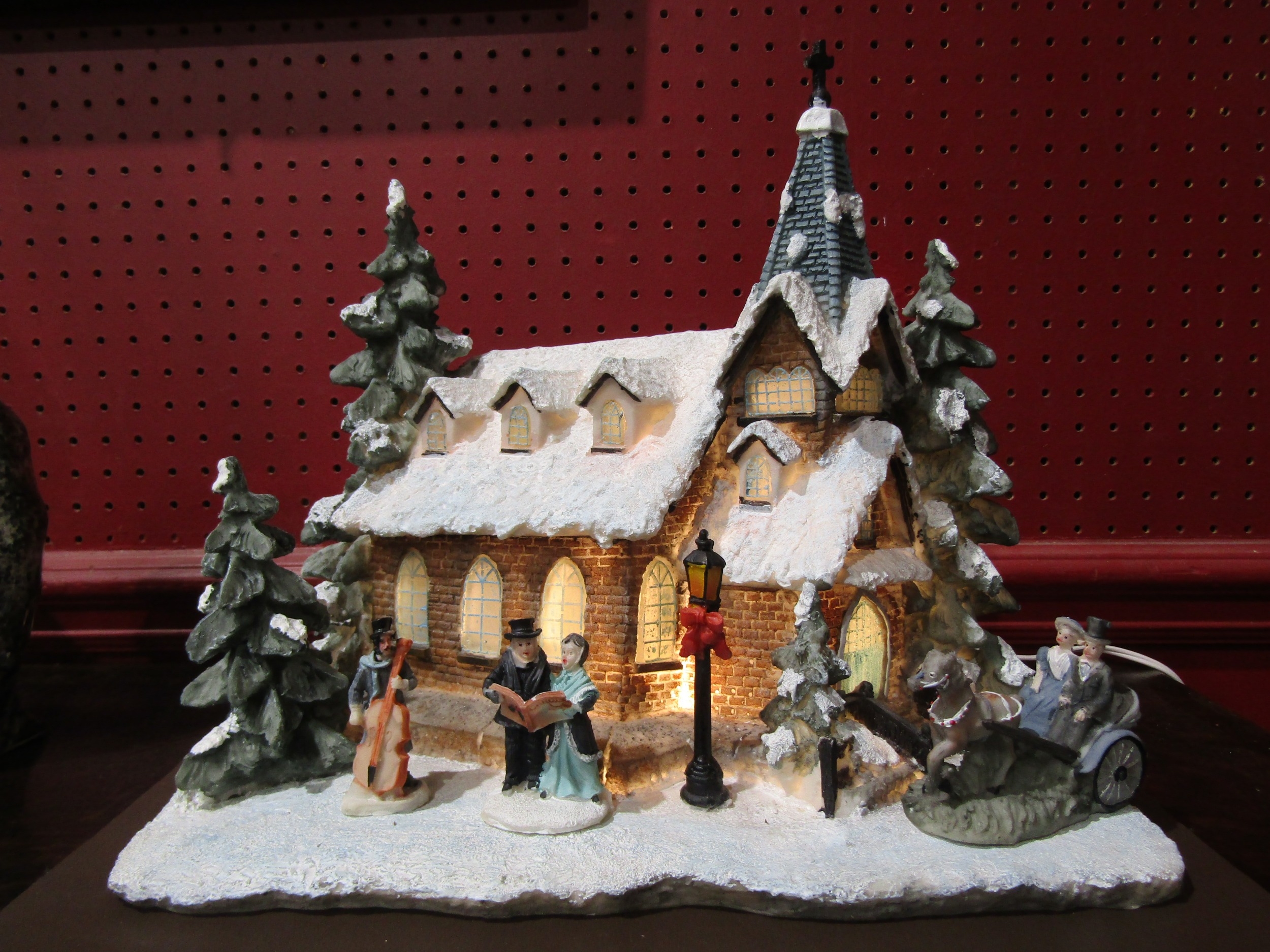 A light-up Victorian winter scene