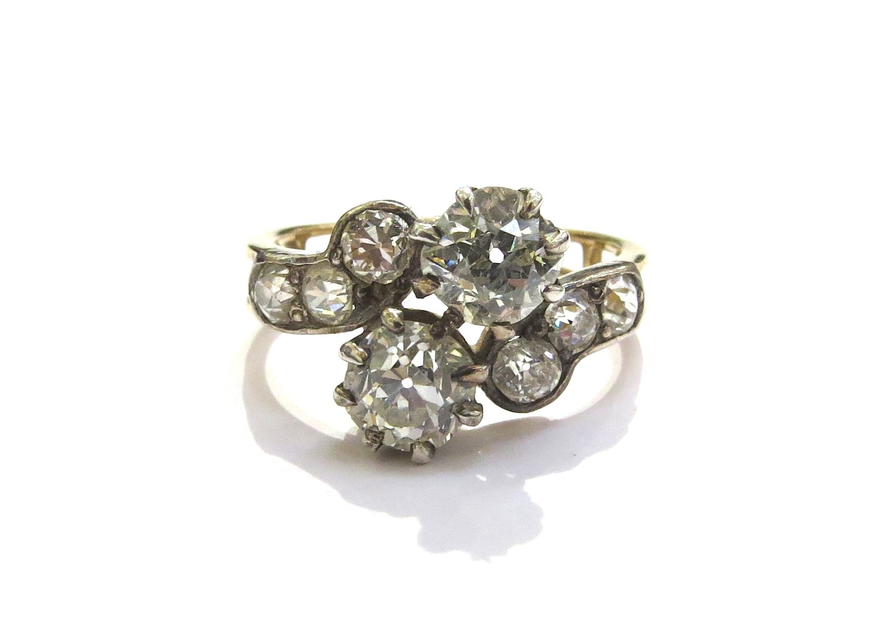 A diamond crossover ring the centre claw set diamonds 0.75ct...