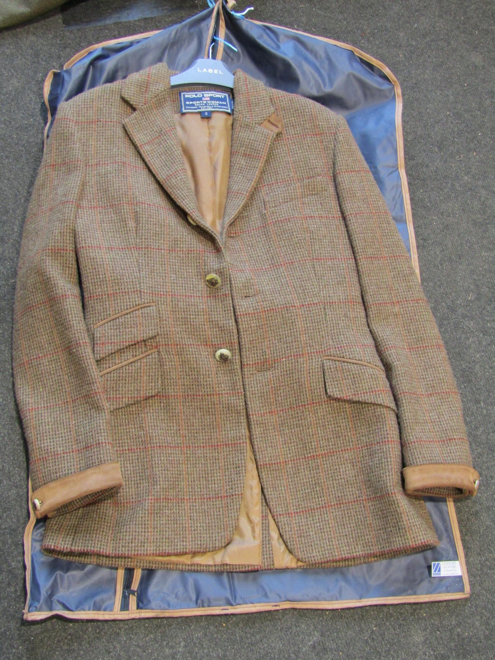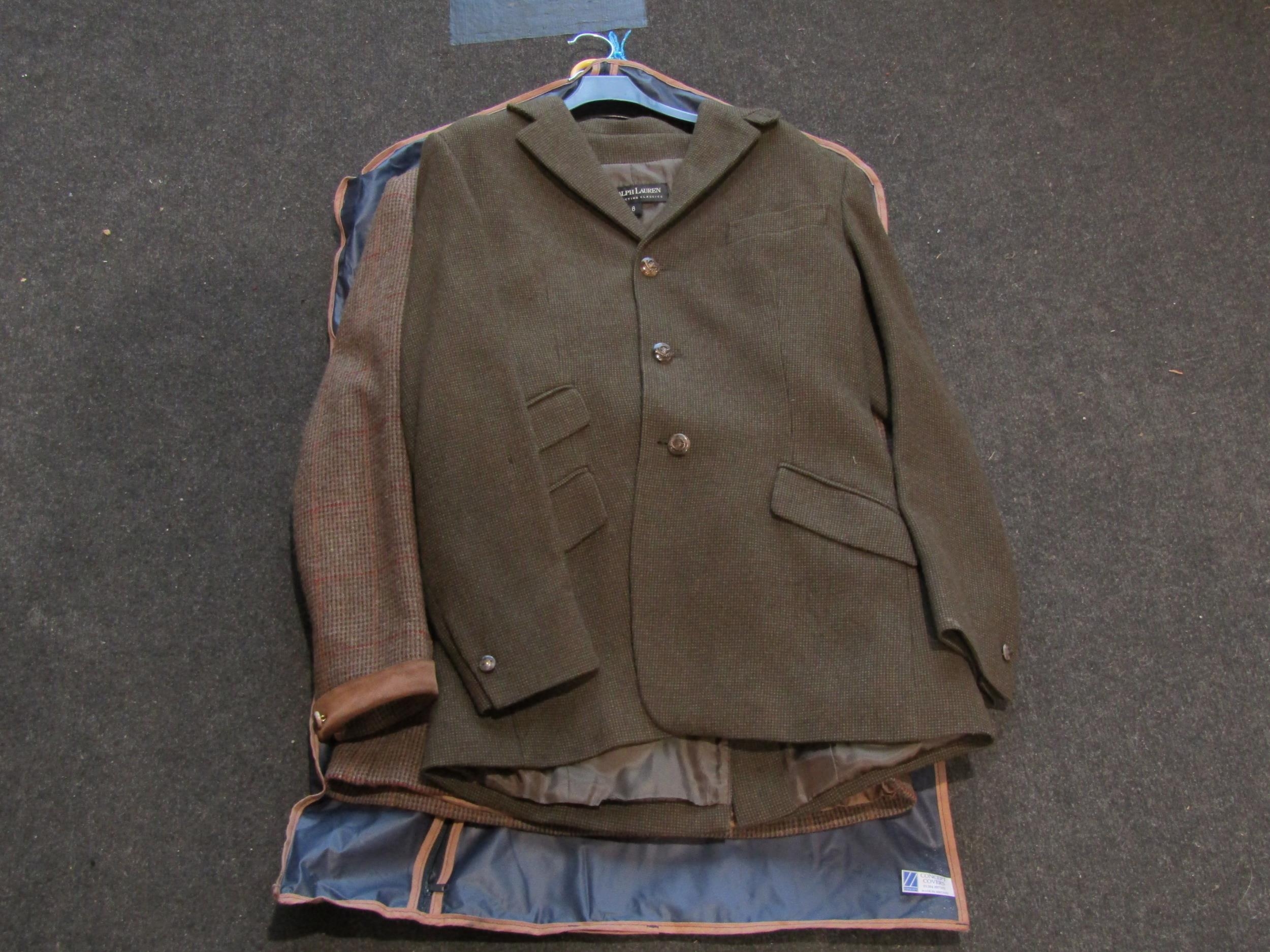 RALPH LAUREN collection classics lady's tailored olive green jacket (8), together with POLO SPORT ladies brown tweed tailored jacket (S) and a Boden denim lady's skirt (3)