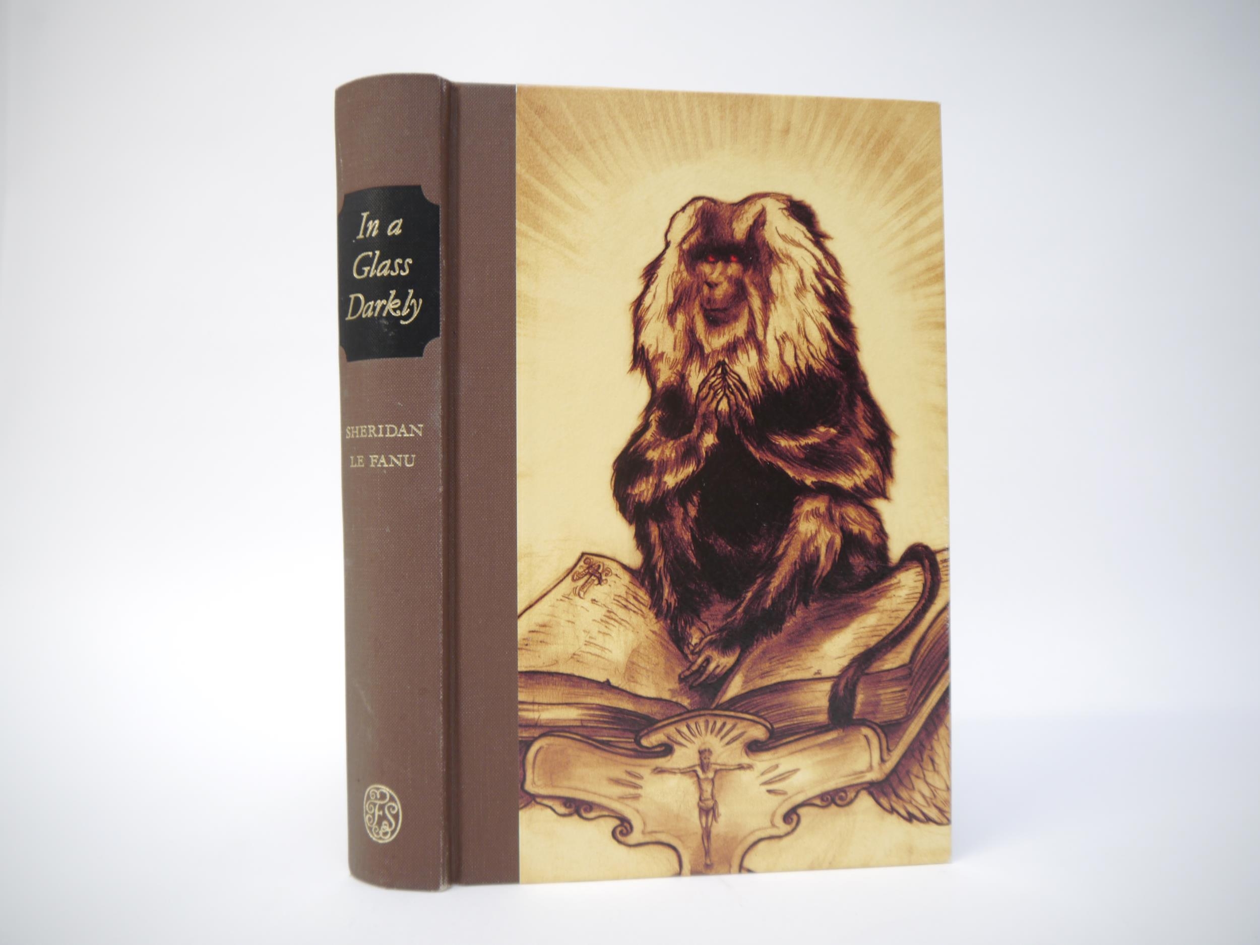 Joseph Sheridan Le Fanu: 'In a Glass Darkly', London, Folio Society, 2011, 1st edition thus, 1st printing, frontis + 8 plates (of which 1 double page) by Finn Campbell-Notman complete, original cloth gilt, pictorial paper covered front cover, slipcase. Collection of five short stories and novellas by the author, being of a Gothic horror, mystery and suspense nature, presented as selections from the posthumous papers of the occult detective Dr. Martin Hesselius