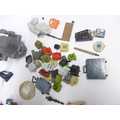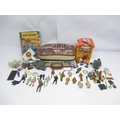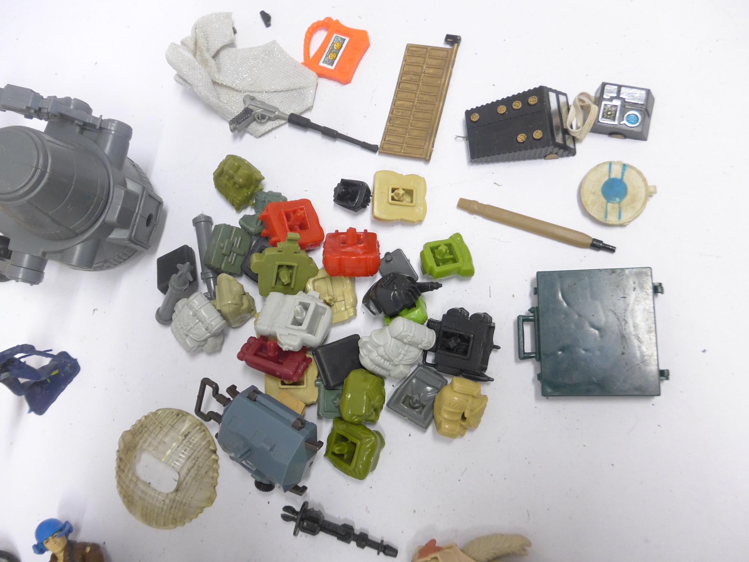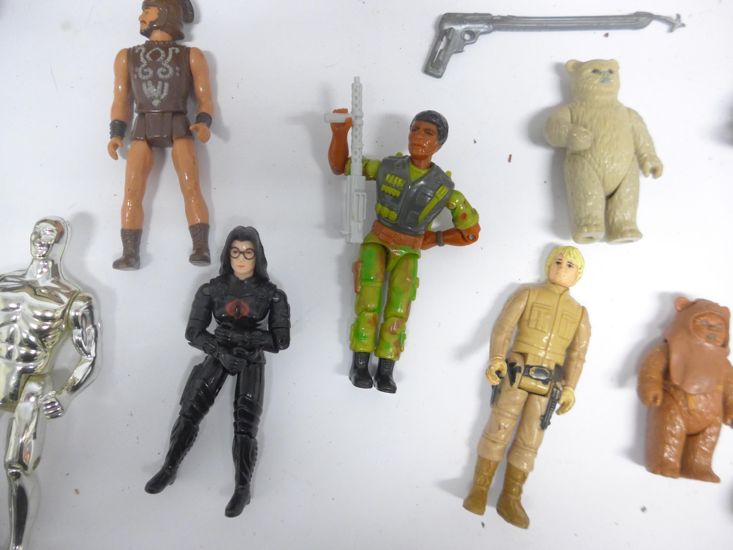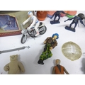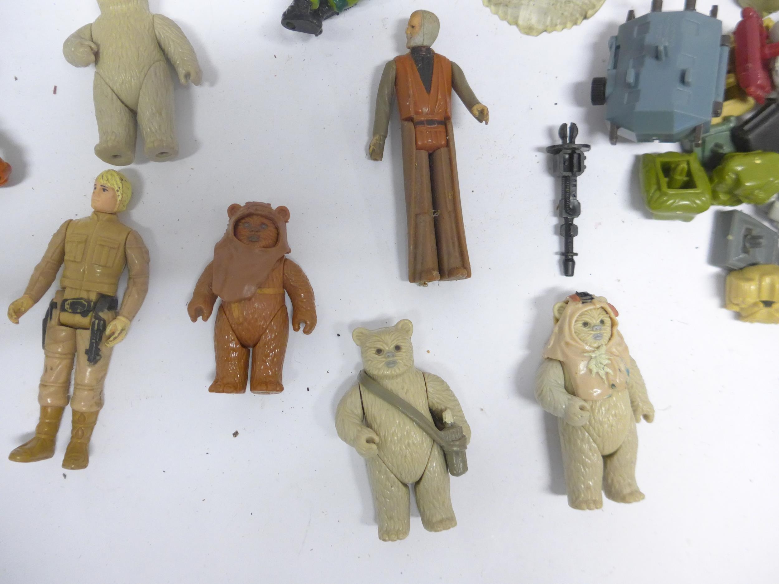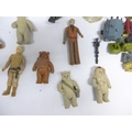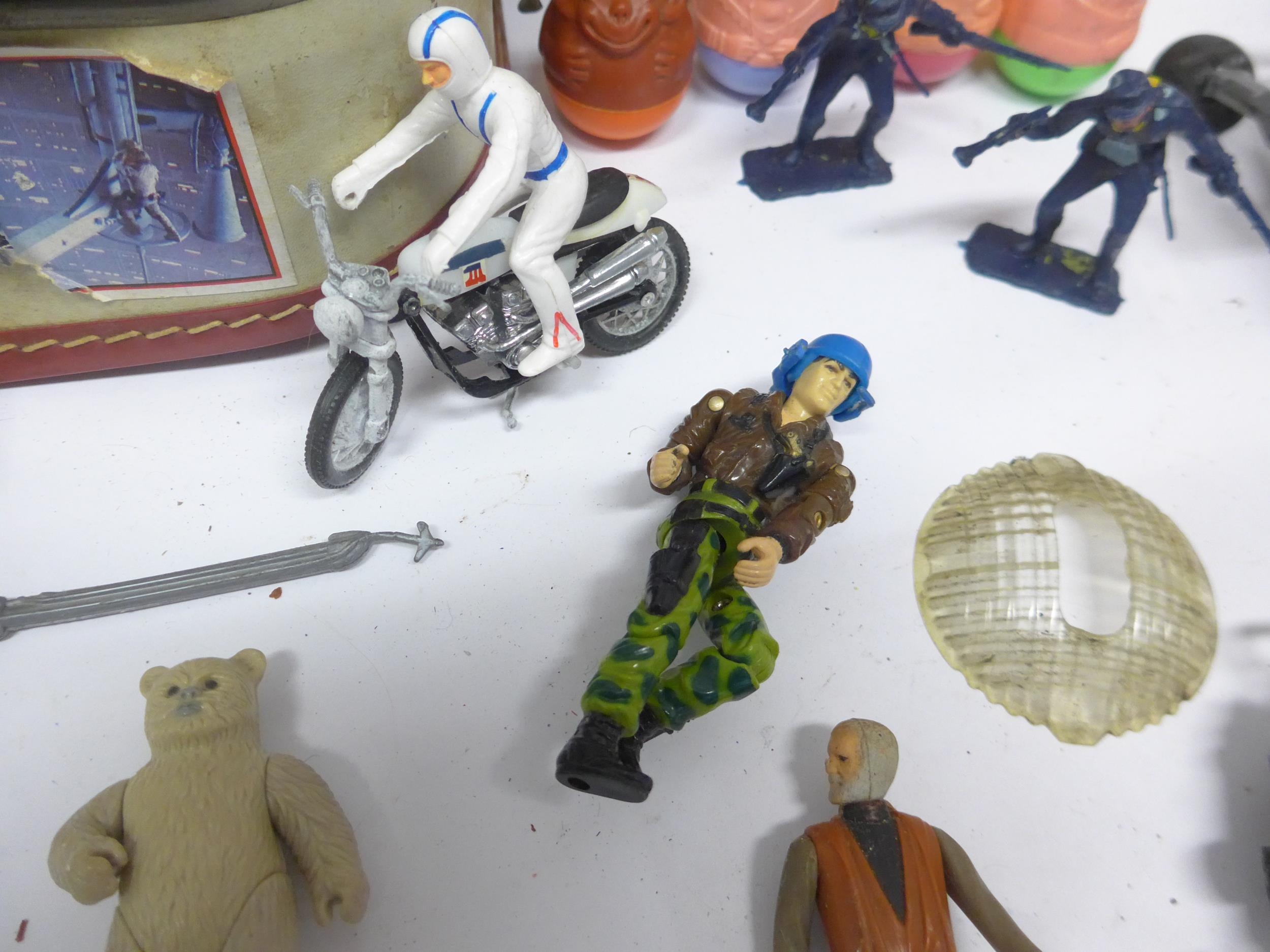 A collection of vintage playworn toys and action figures including Palitoy/Kenner Star Wars figures and vehicle parts, Battlestar Galactica, Star Trek, Clash Of The Titans, Matchbox MAC Mobile Actionm Command, Evel Knieval, Battlecars driving game, Tomy Skyhopper, etc.