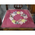 A Georgian walnut open armchair with floral garland needlepoint seat