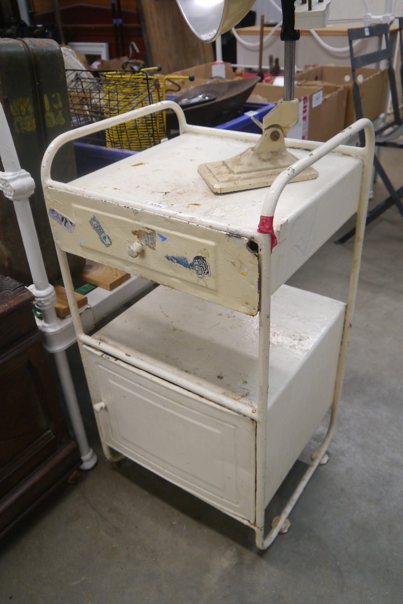A painted metal medical cabinet