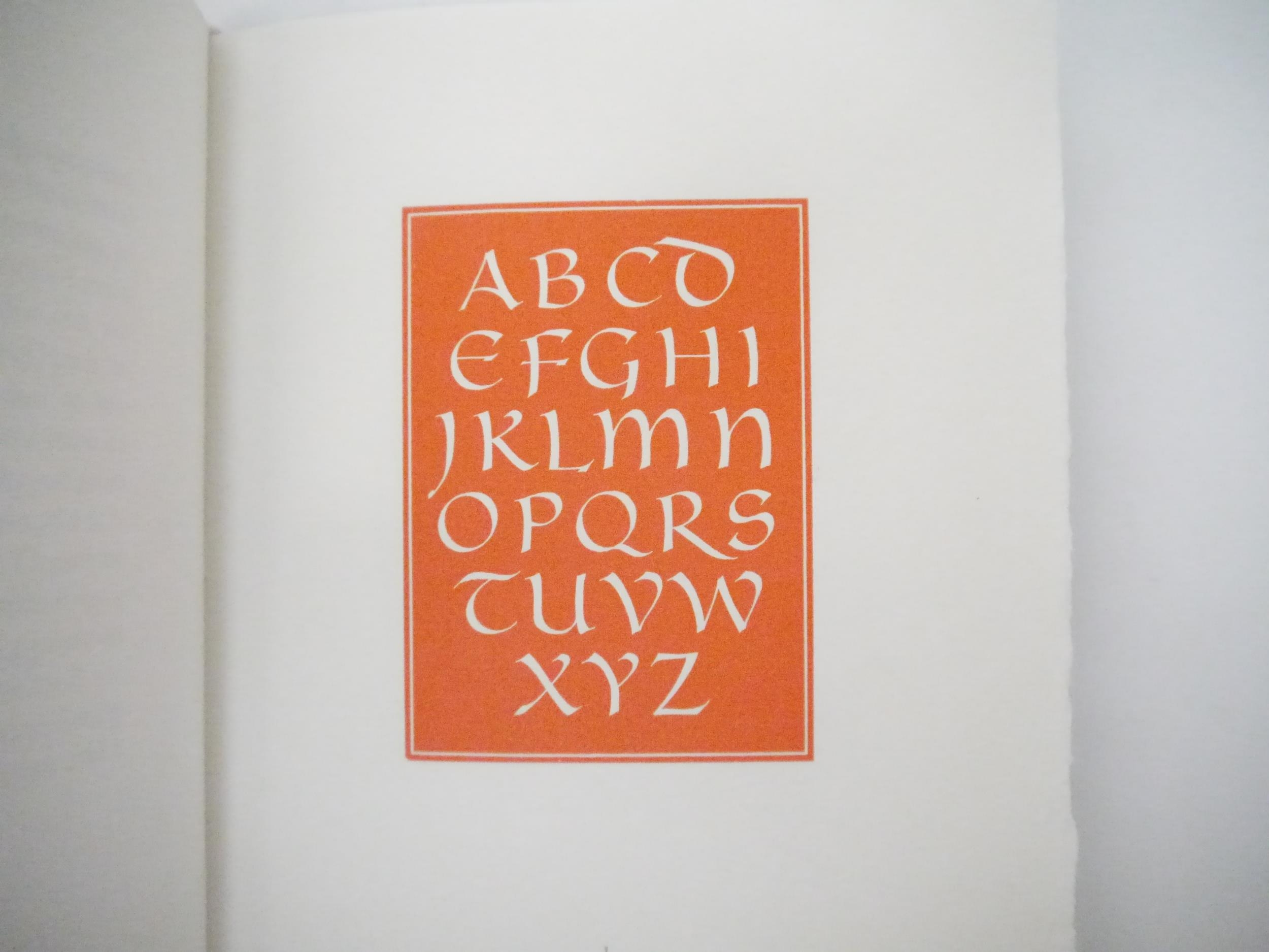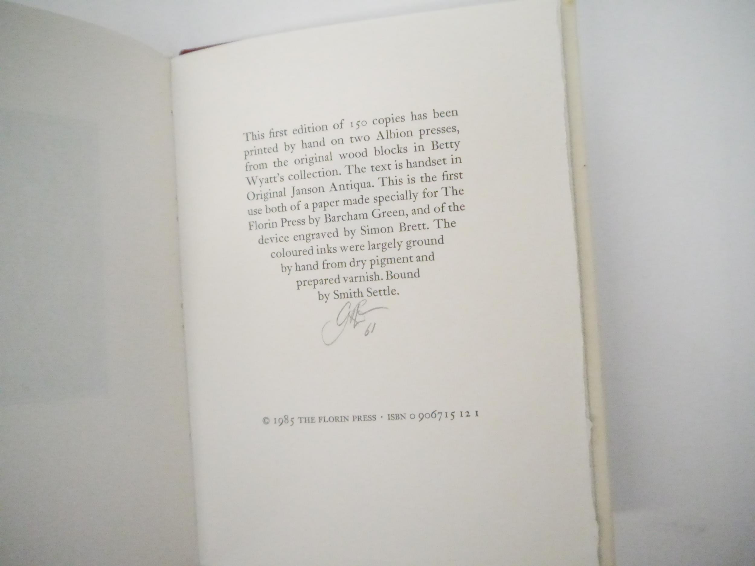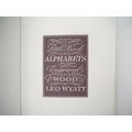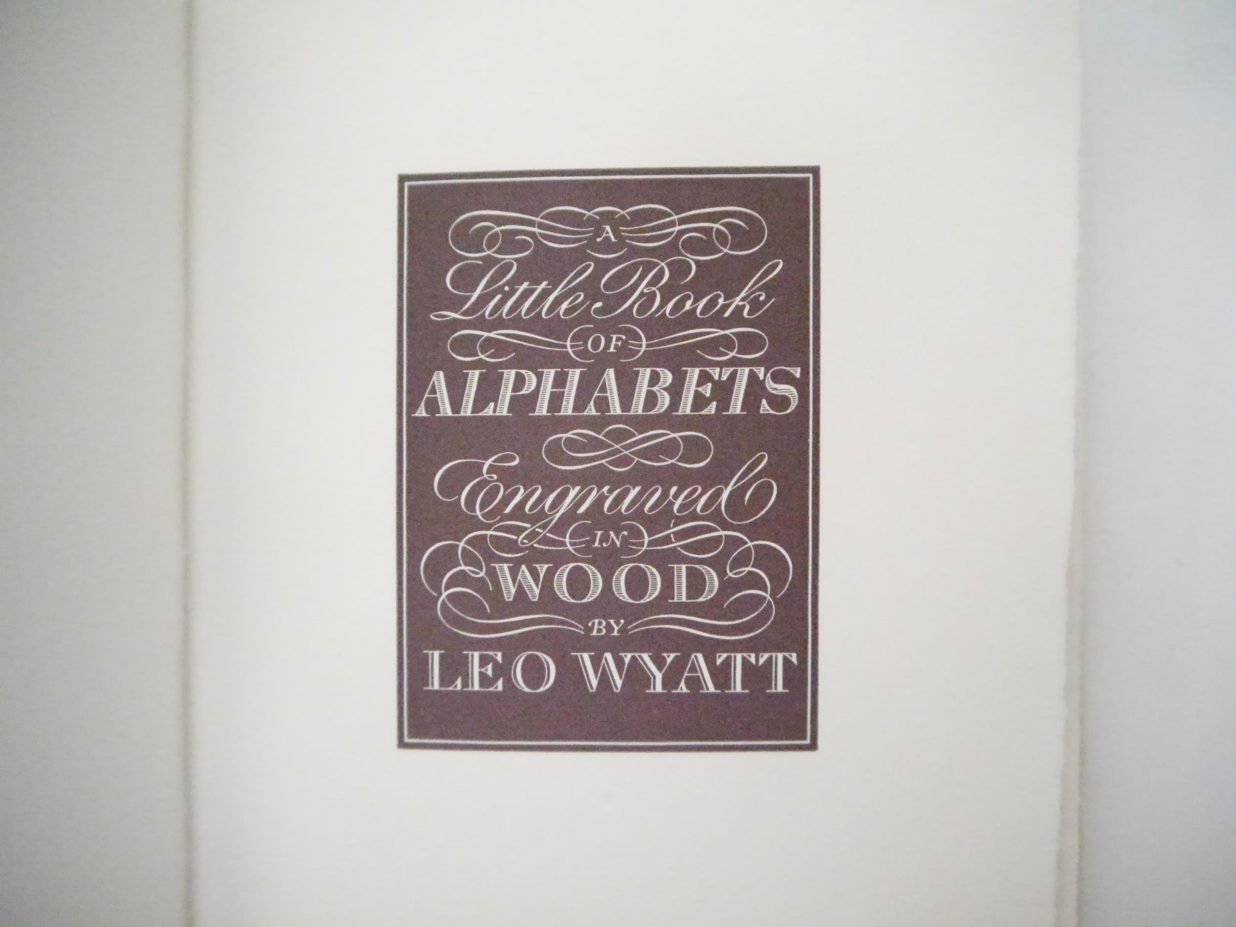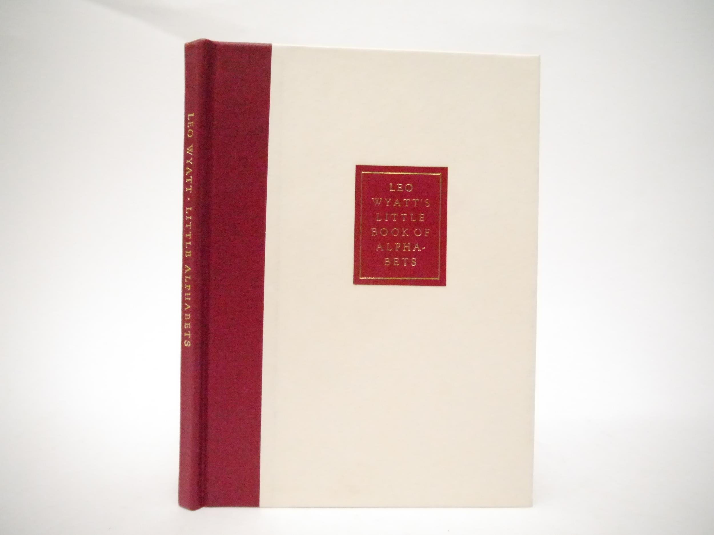 The Florin Press. Leo Wyatt: 'Leo Wyatt's Little Book of Alphabets with an Introduction by Michael Taylor.', Printed and published by The Florin Press, 1985, limited edition, number 61 of 150 numbered copies printed from the original wood blocks, initialled by the printer, Graham Williams, [16]pp, wood-engraved title + 12 leaves of alphabets printed in several colours from the original blocks on Barcham Green paper specially-made for The Florin Press and here used for the first time, printer's device by Simon Brett, original quarter burgundy leather over cream coloured paper covered boards, gilt spine, burgundy leather gilt front cover label, original slipcase