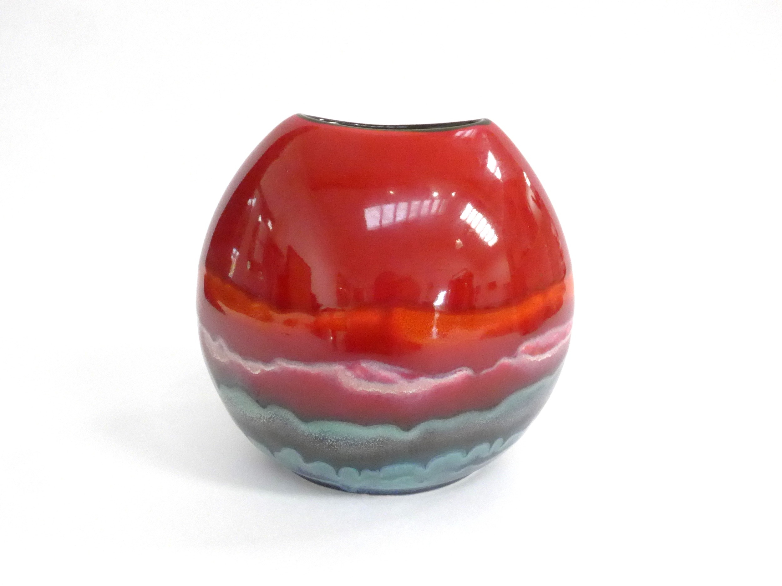 A modern Poole Pottery Horizon pattern vase, purse form. 18cm high