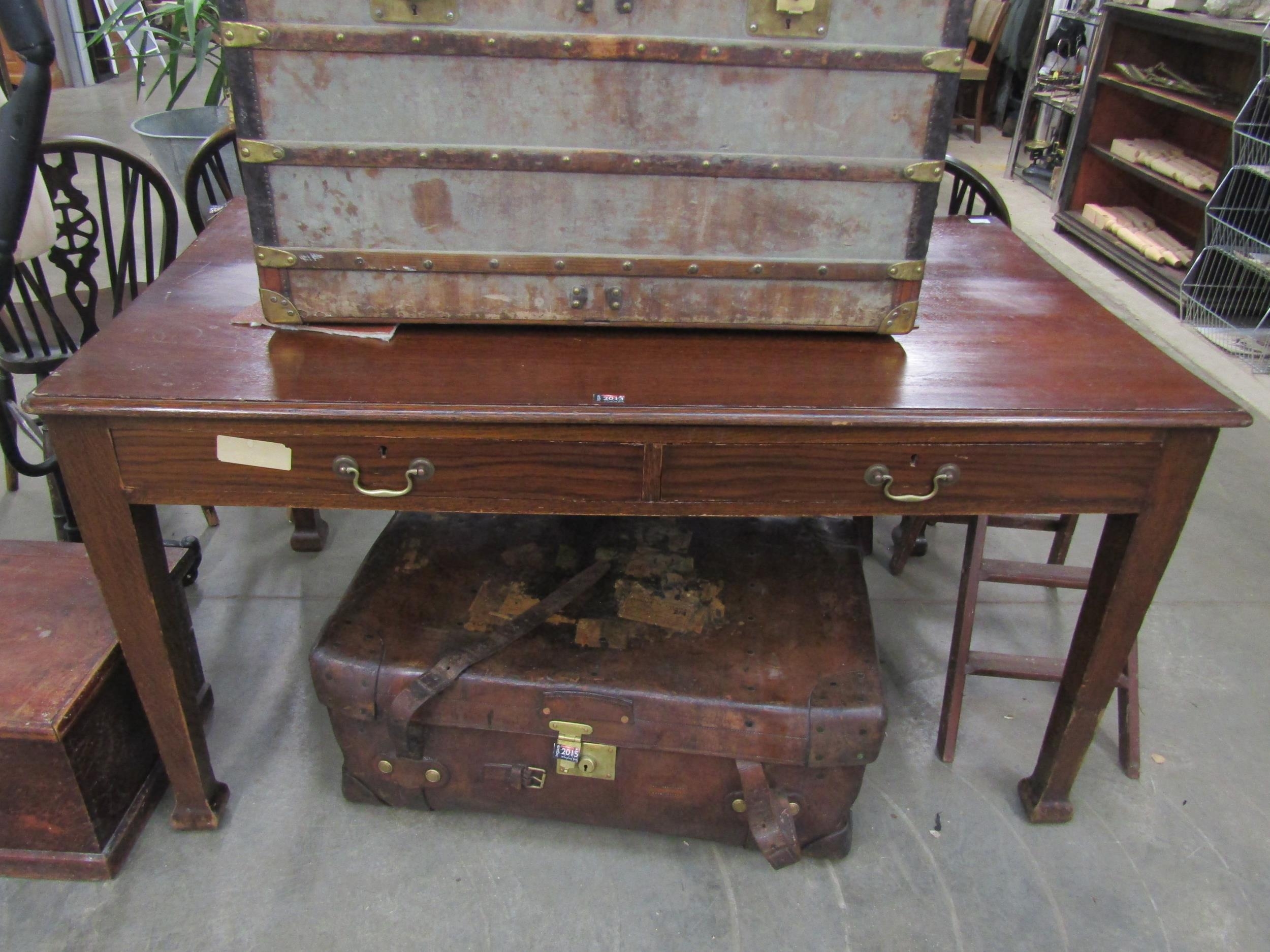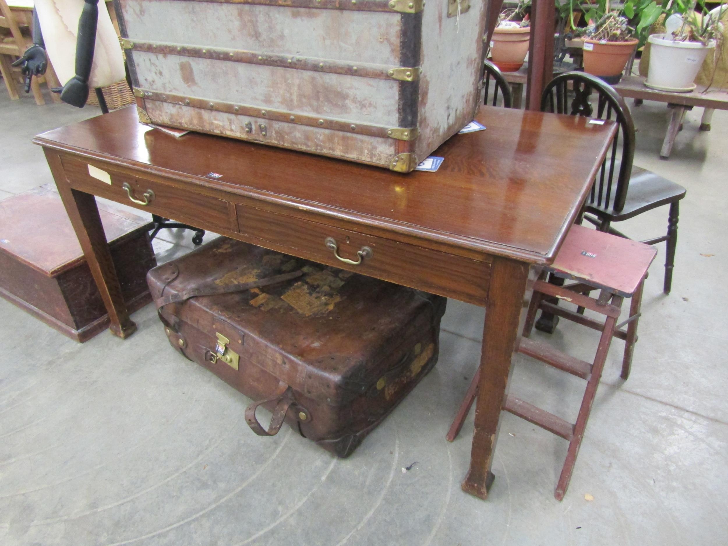 A mid 20th Century oak two drawer table, square tapering supports 90x152cm