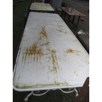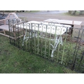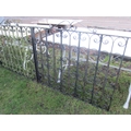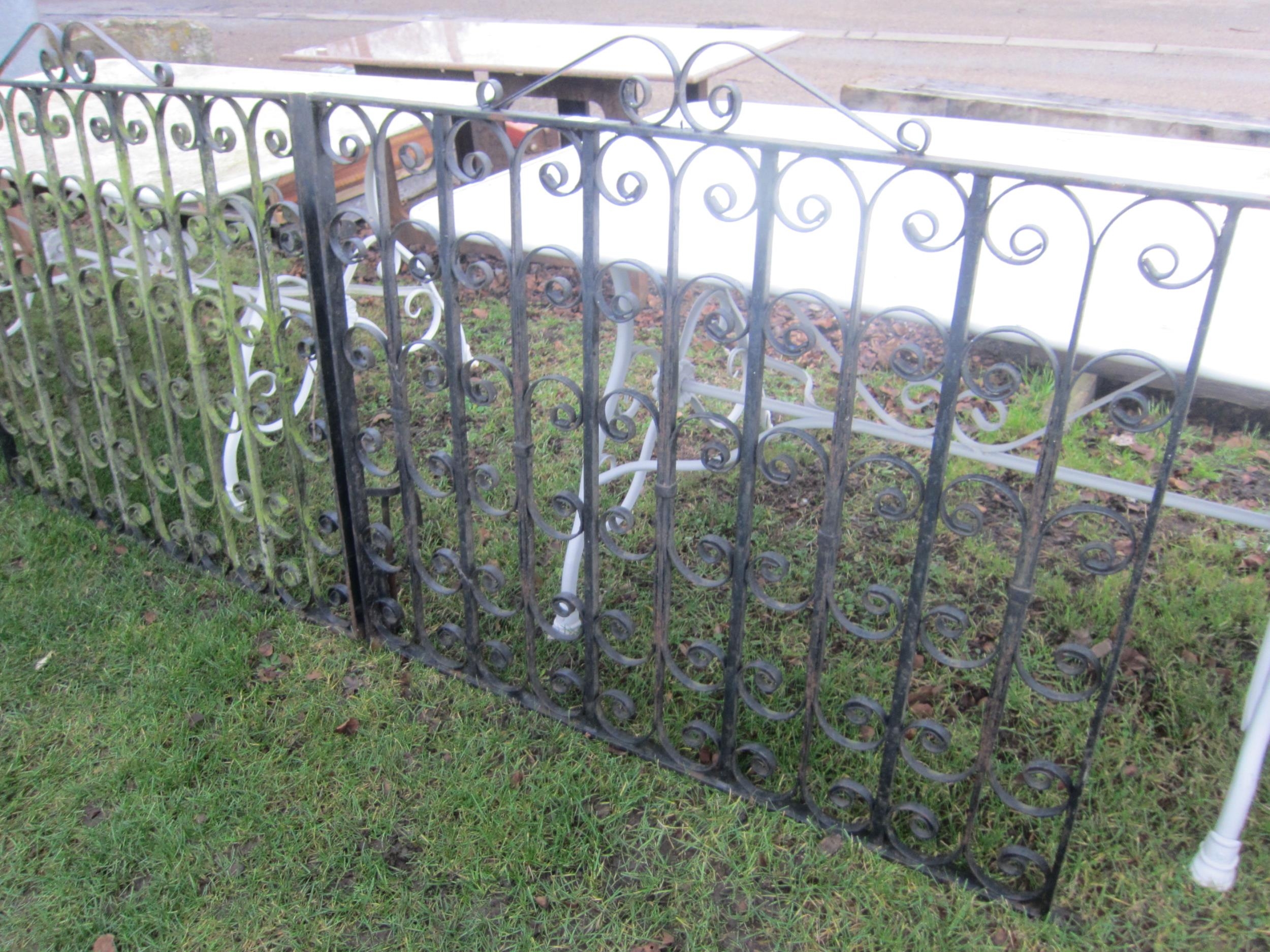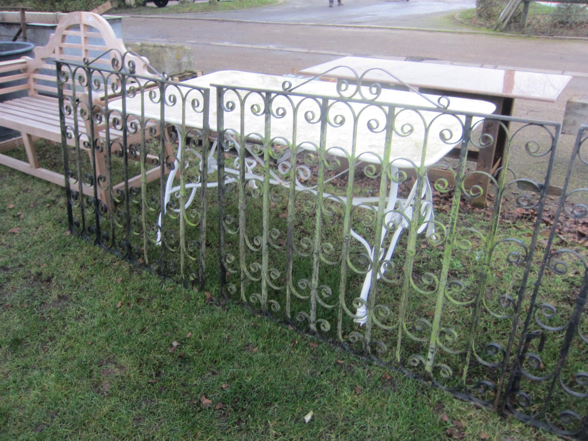 A set of three iron scrolled gates; includes pair of drive and pedestrian, drive gate opening 237cm x 92cm, side gate 100cm x 92cm