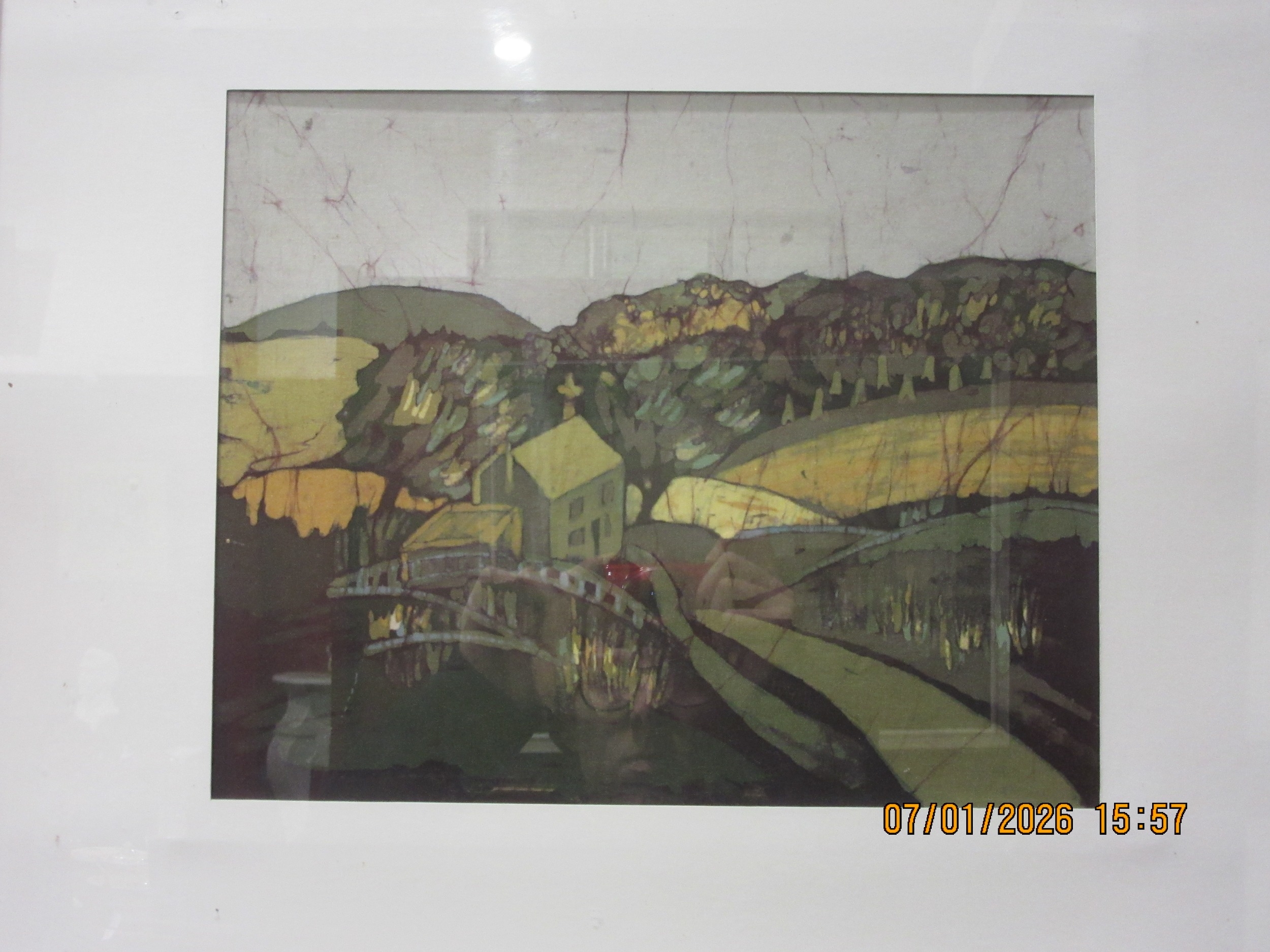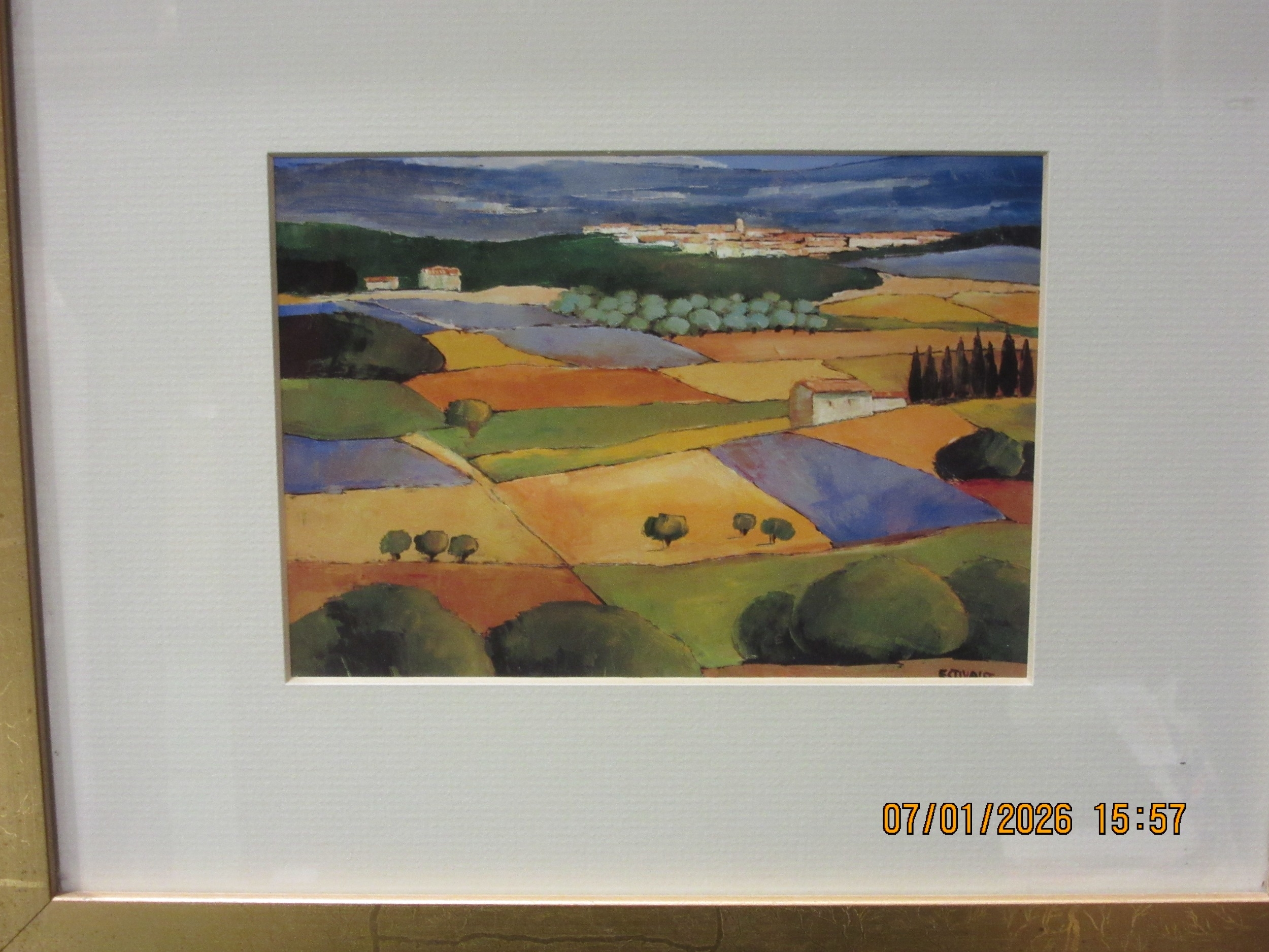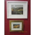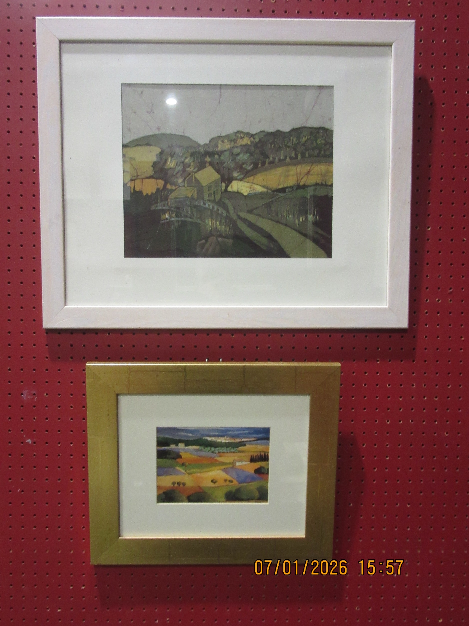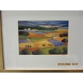 Two modern prints - "Patchwork of Fields" 12cm x 17cm, framed and glazed, together with "house on the hill" with trees and fields, framed and glazed, 26cm x 32cm (2)