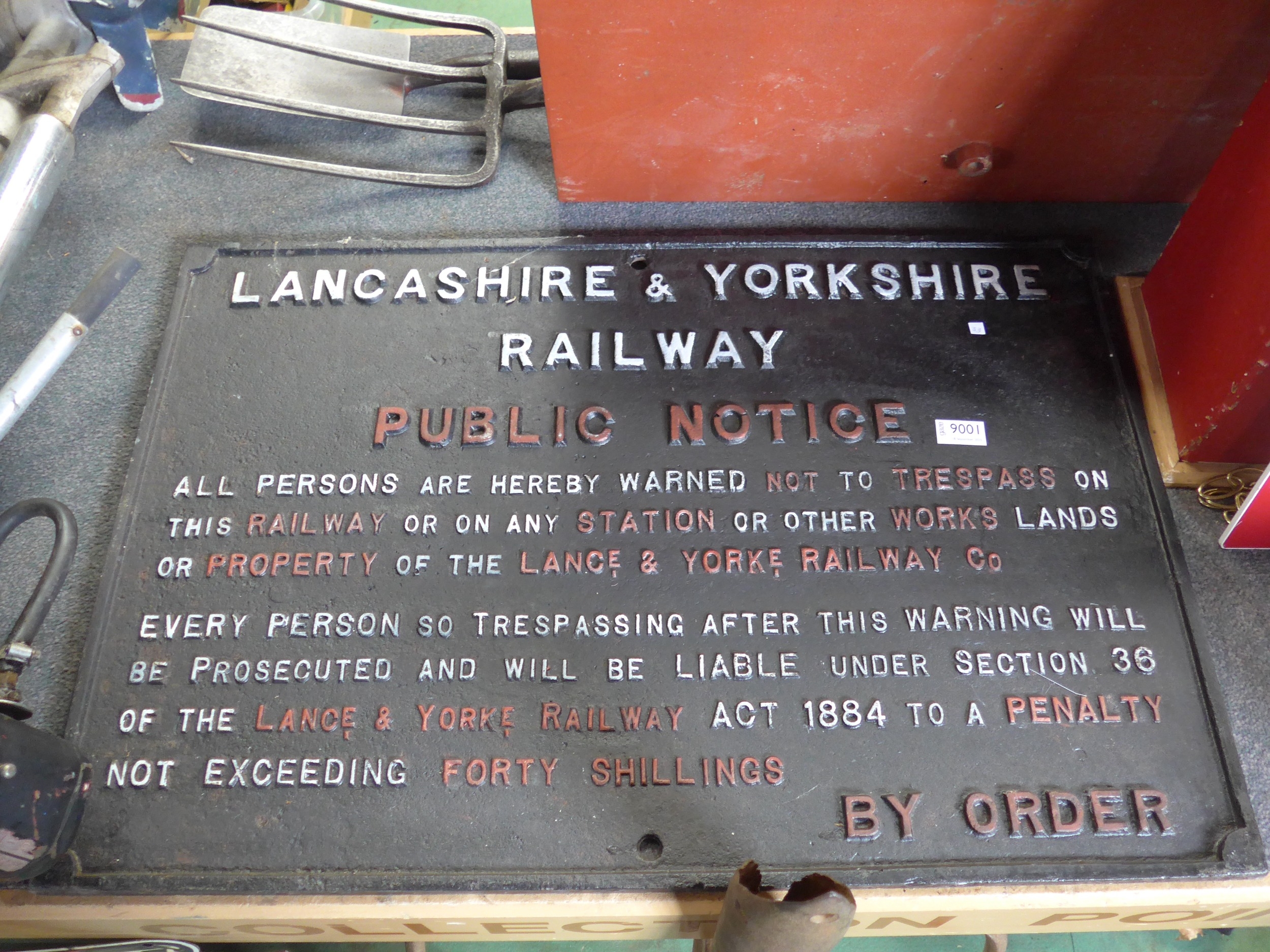 A cast iron Lancashire & Yorkshire Railway cast iron sign, m...