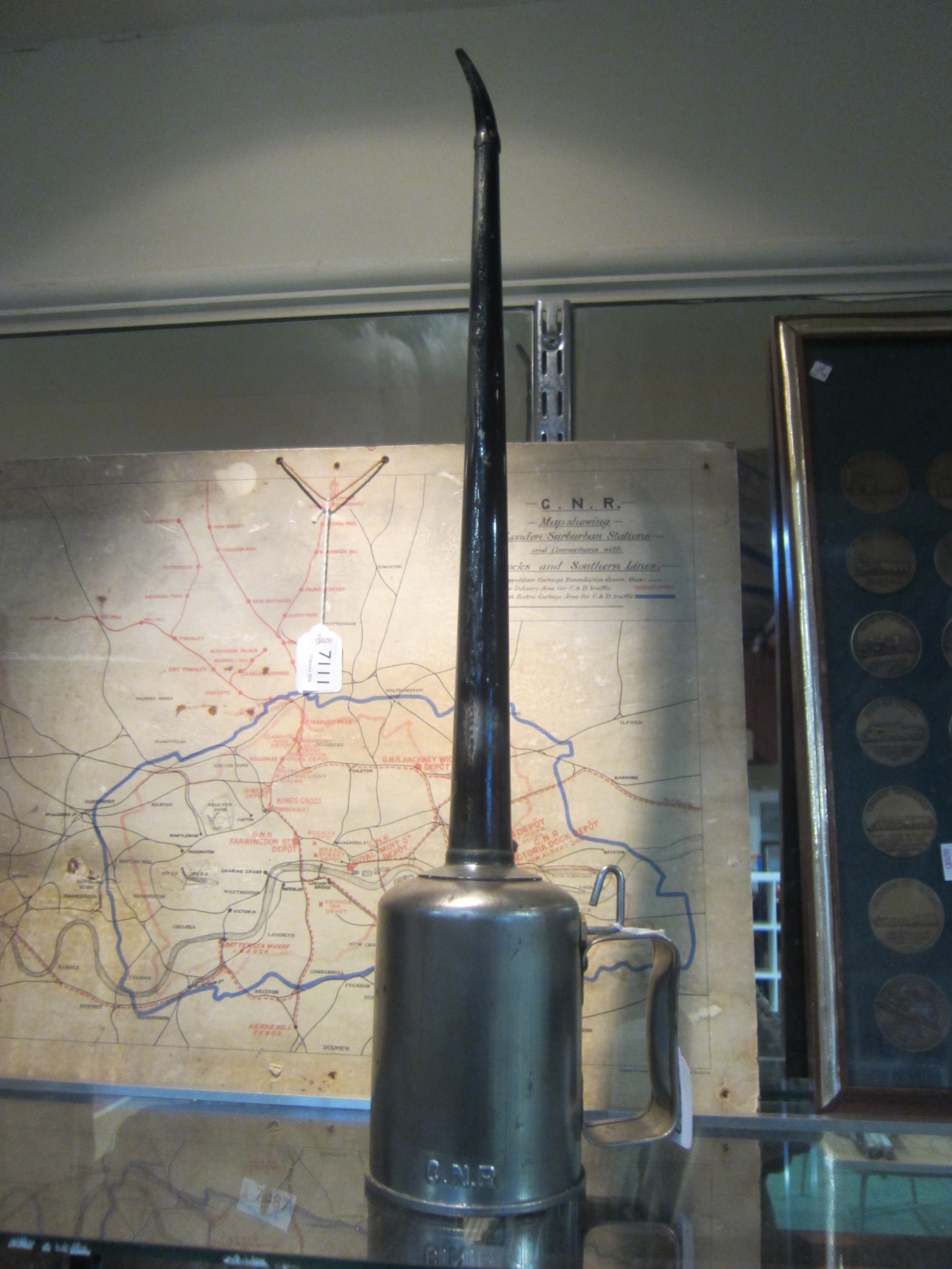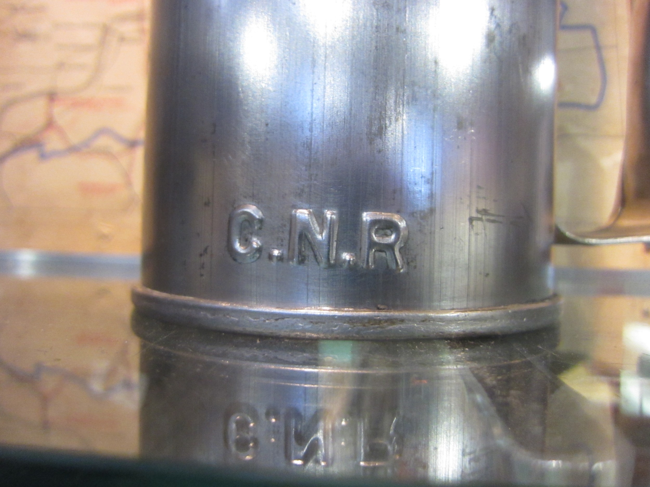 A Canadian Railways upright oil can, stamped CNR to the side...