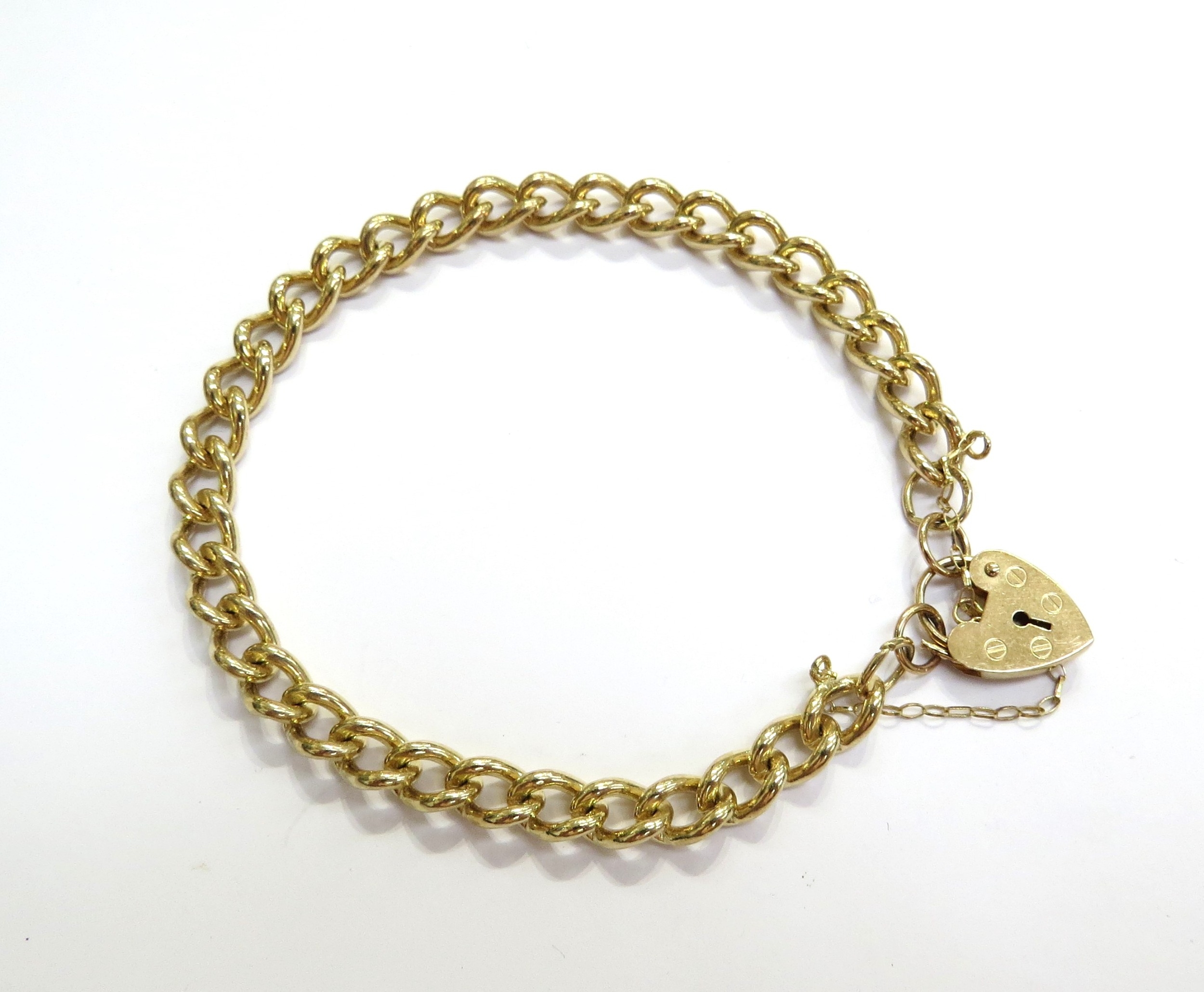 A 9ct gold curb link bracelet with padlock clasp, 18cm long, 15.7g