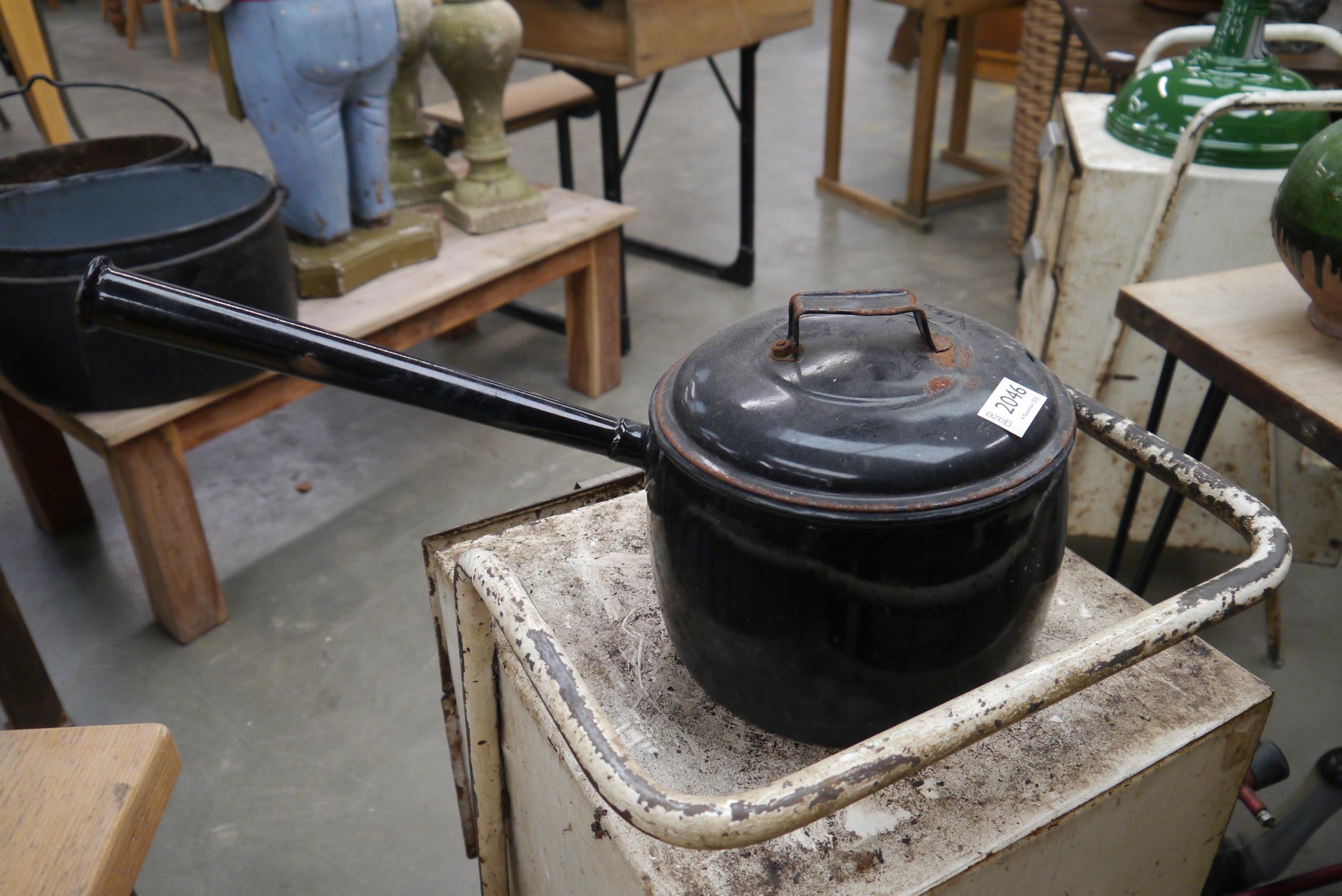 An enamel saucepan