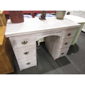 A lime wash pine twin pedestal desk of six drawers, 76cm tal...