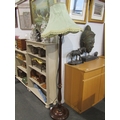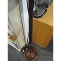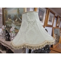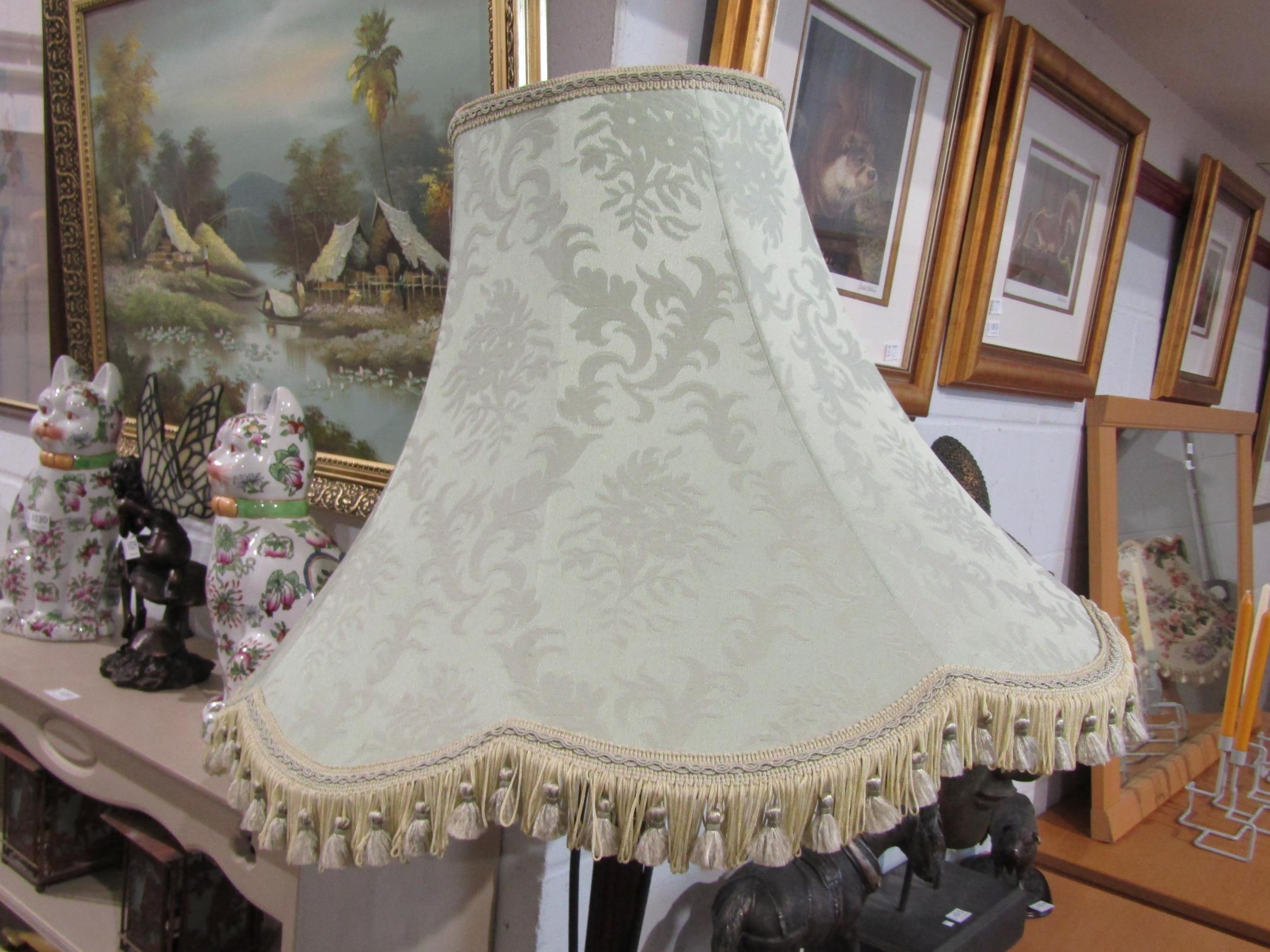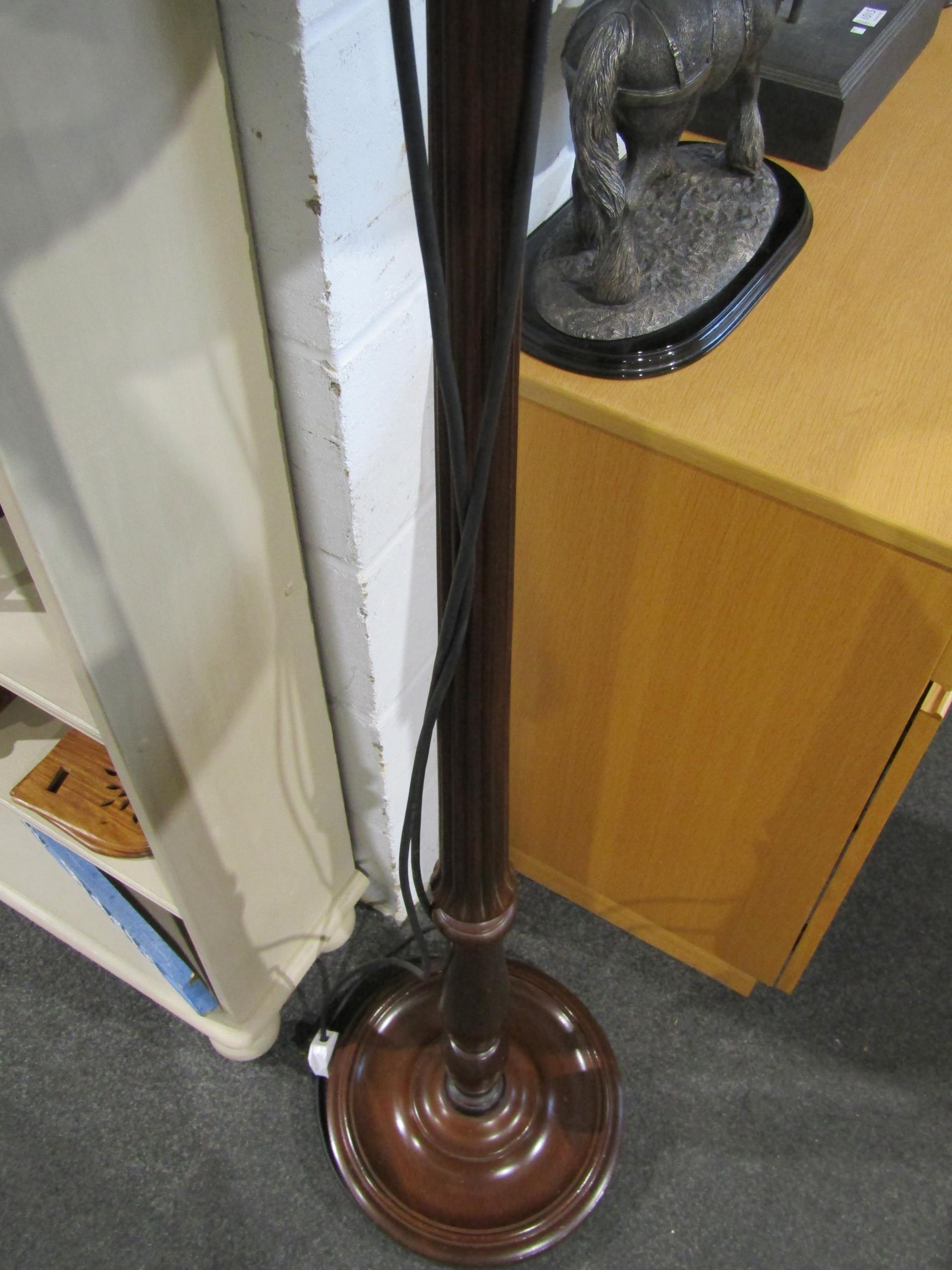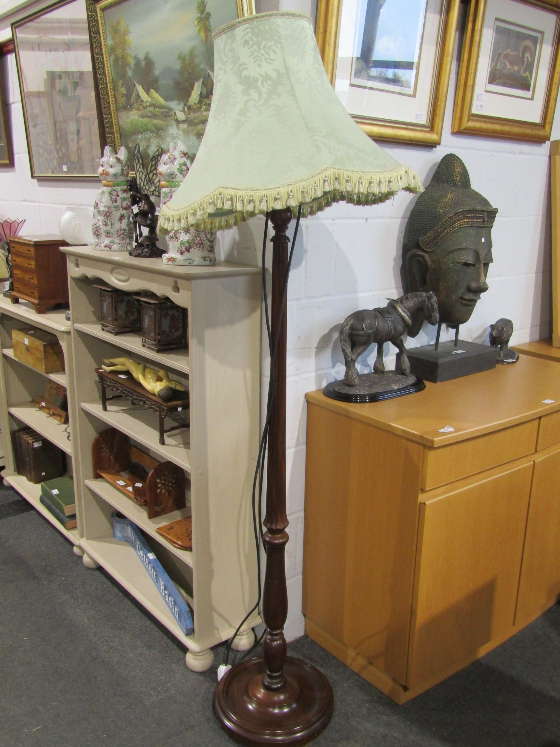 A mahogany standard lamp with fluted column, tasselled shade