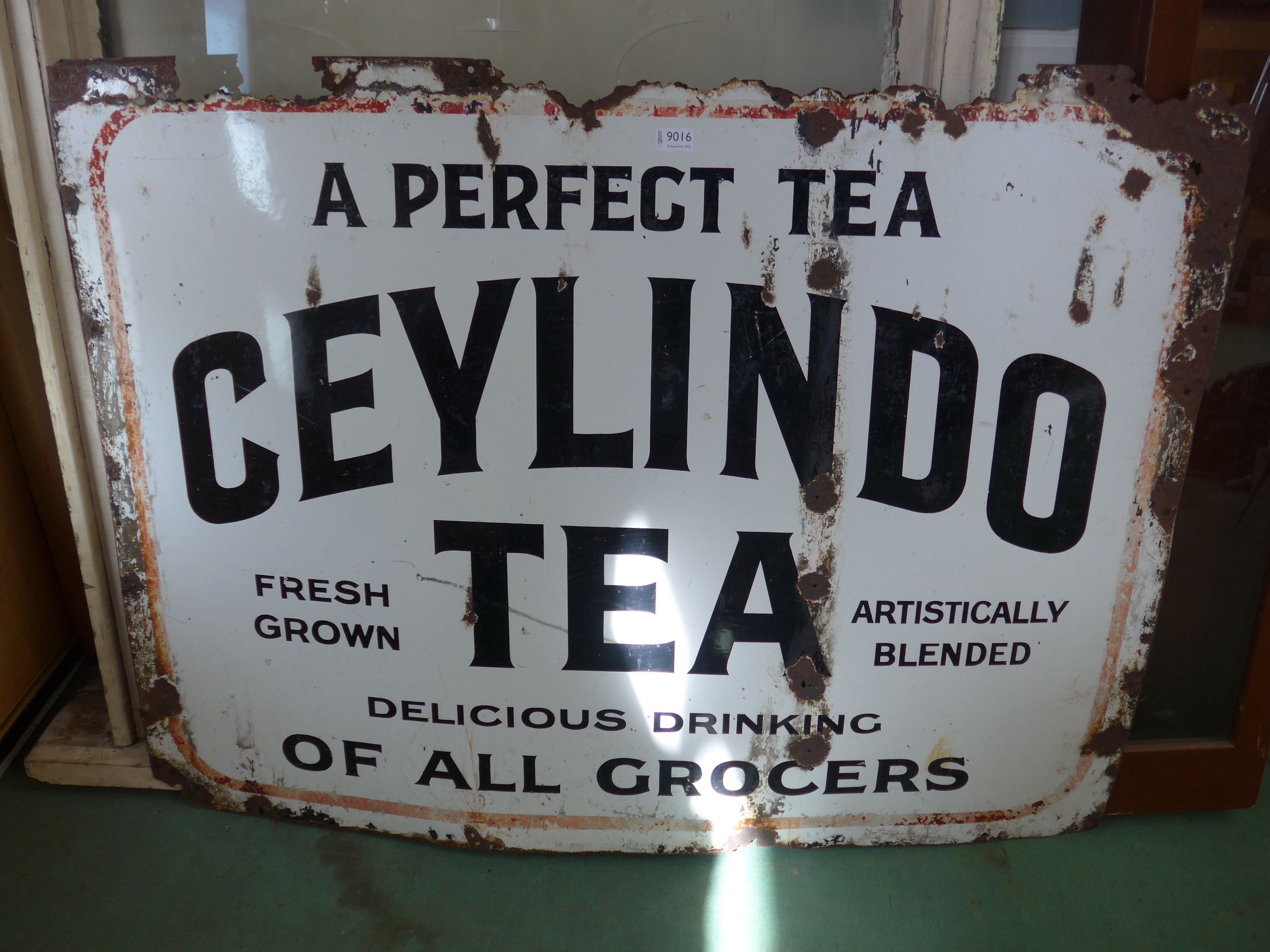 An enamel sign - Ceylindo Tea, top edge rough 122 x 90cm