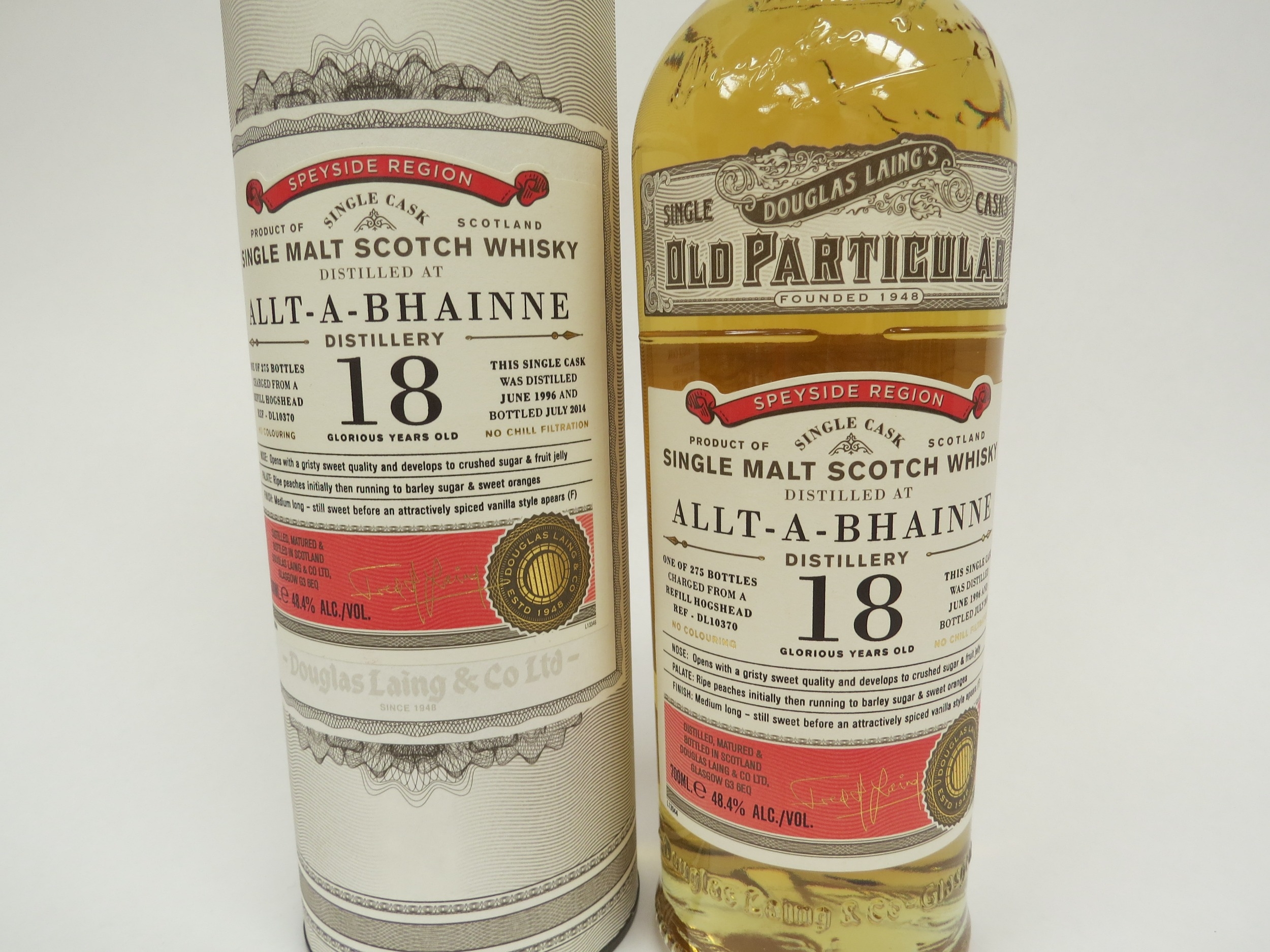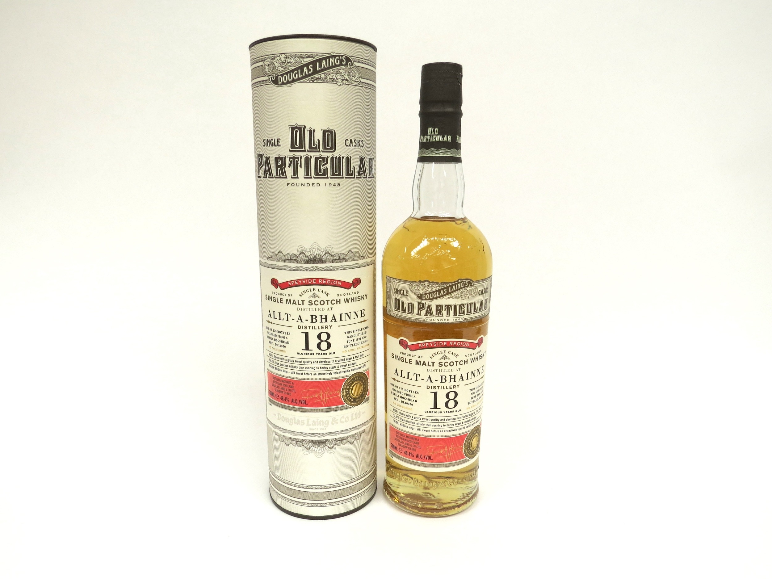 Allt-A-Bhainne 18 Year Old, Old Particular Single Malt Scotch Whisky, one of 275 bottles, single cask distilled June 1996, bottled July 2014, 700ml, boxed