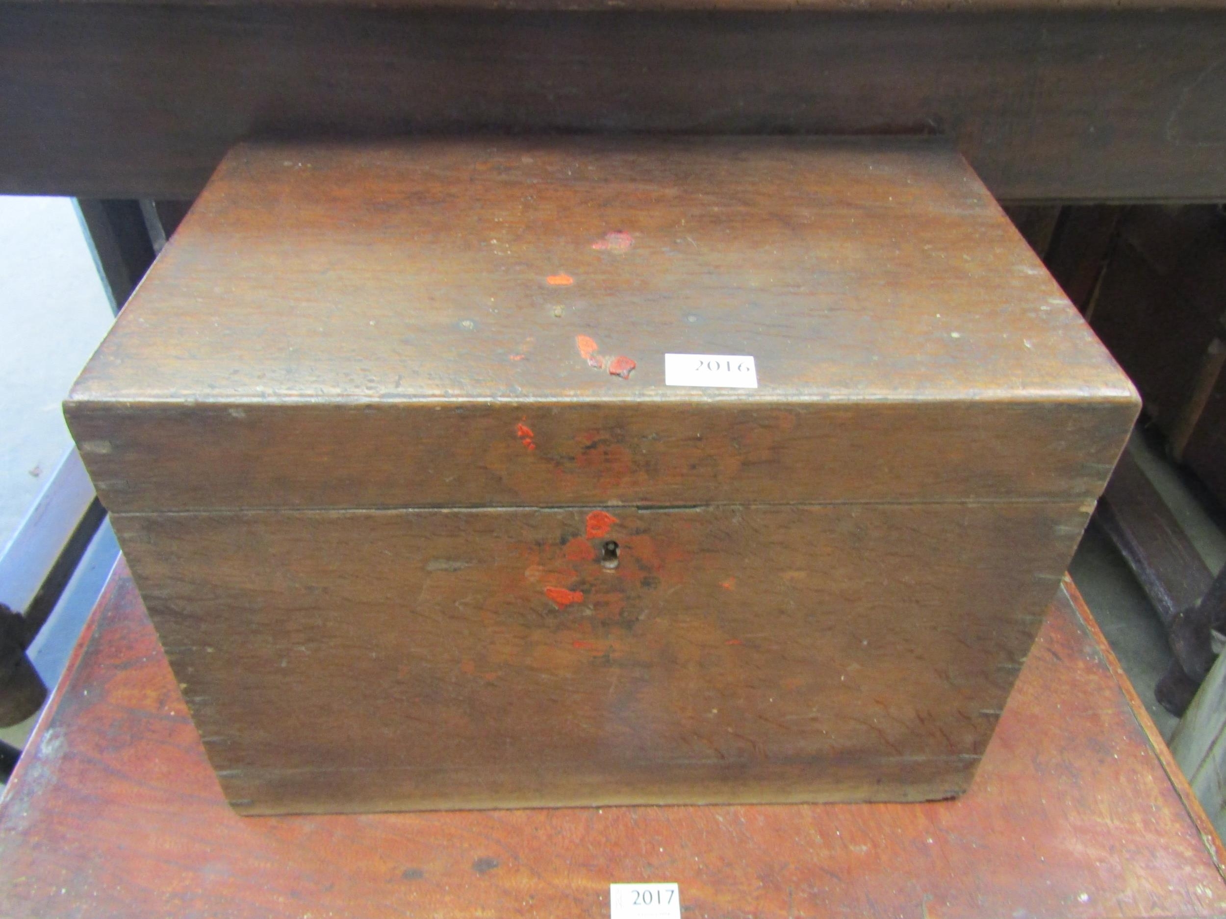 A Victorian oak silver chest with brass carrying handles, 31cm x 44cm x 28cm