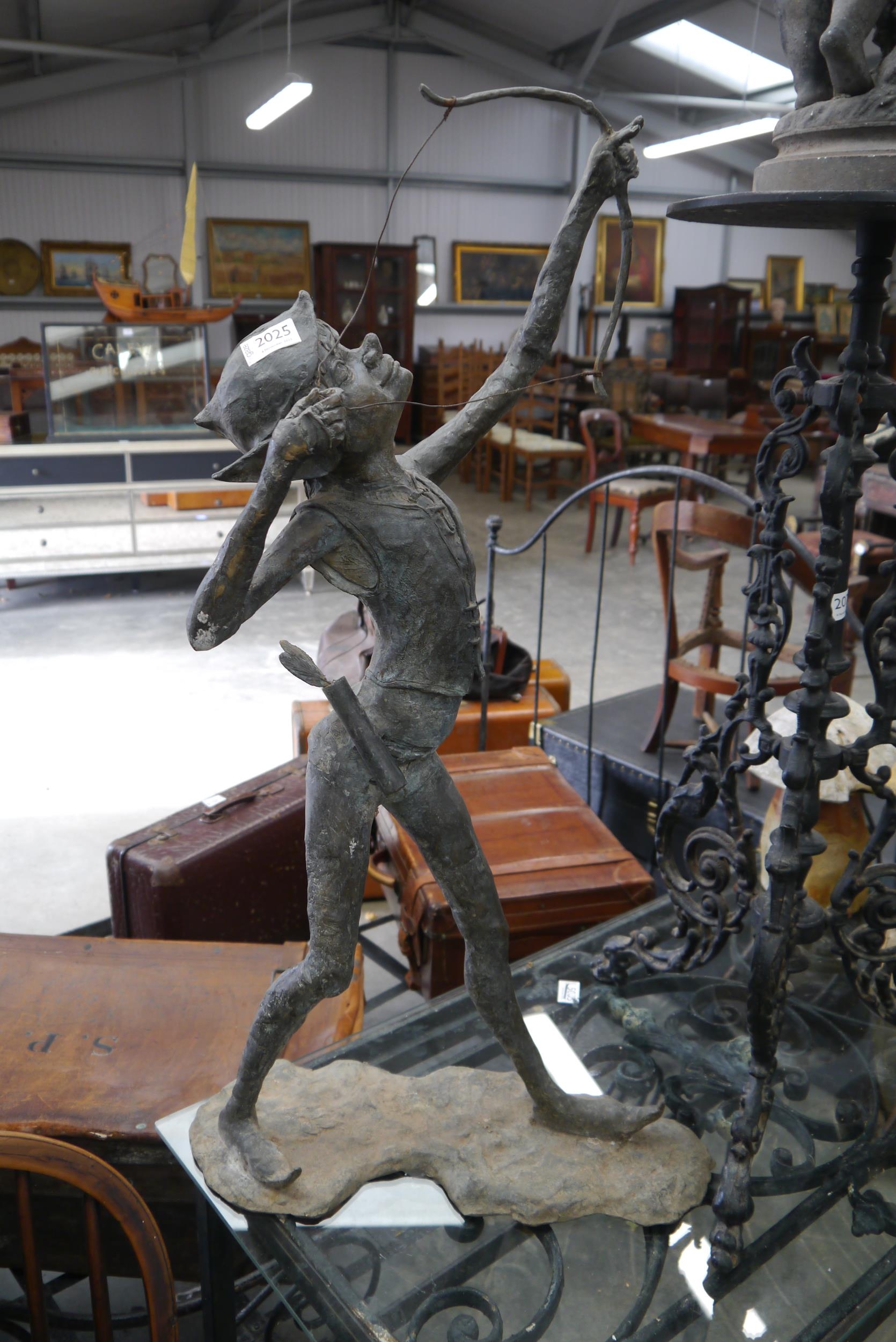 A bronze study of Peter Pan with bow and arrow, 83cm tall