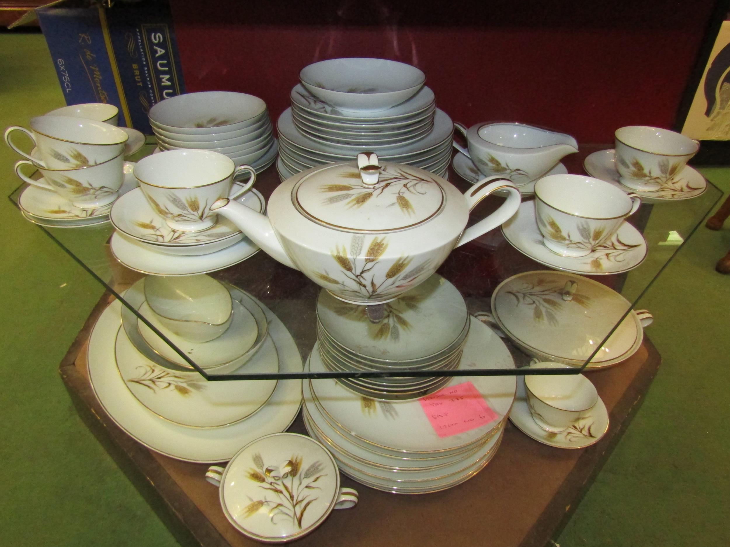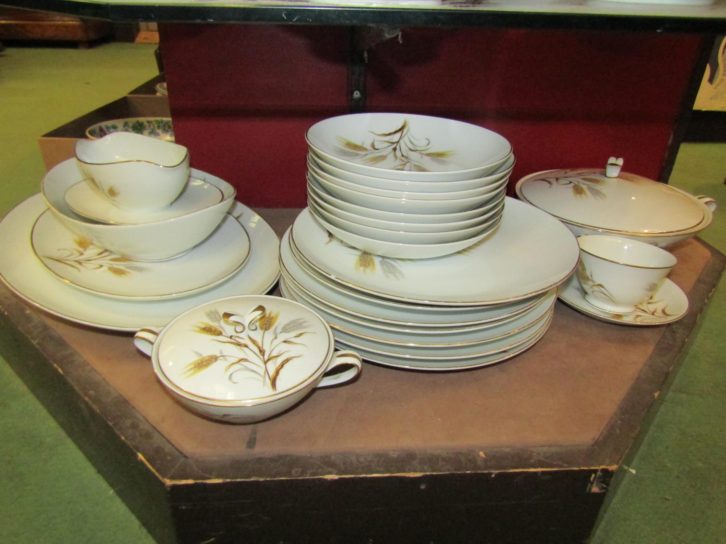 A quantity of Noritake china dinner ware, gilt edge with wheat sheaf design