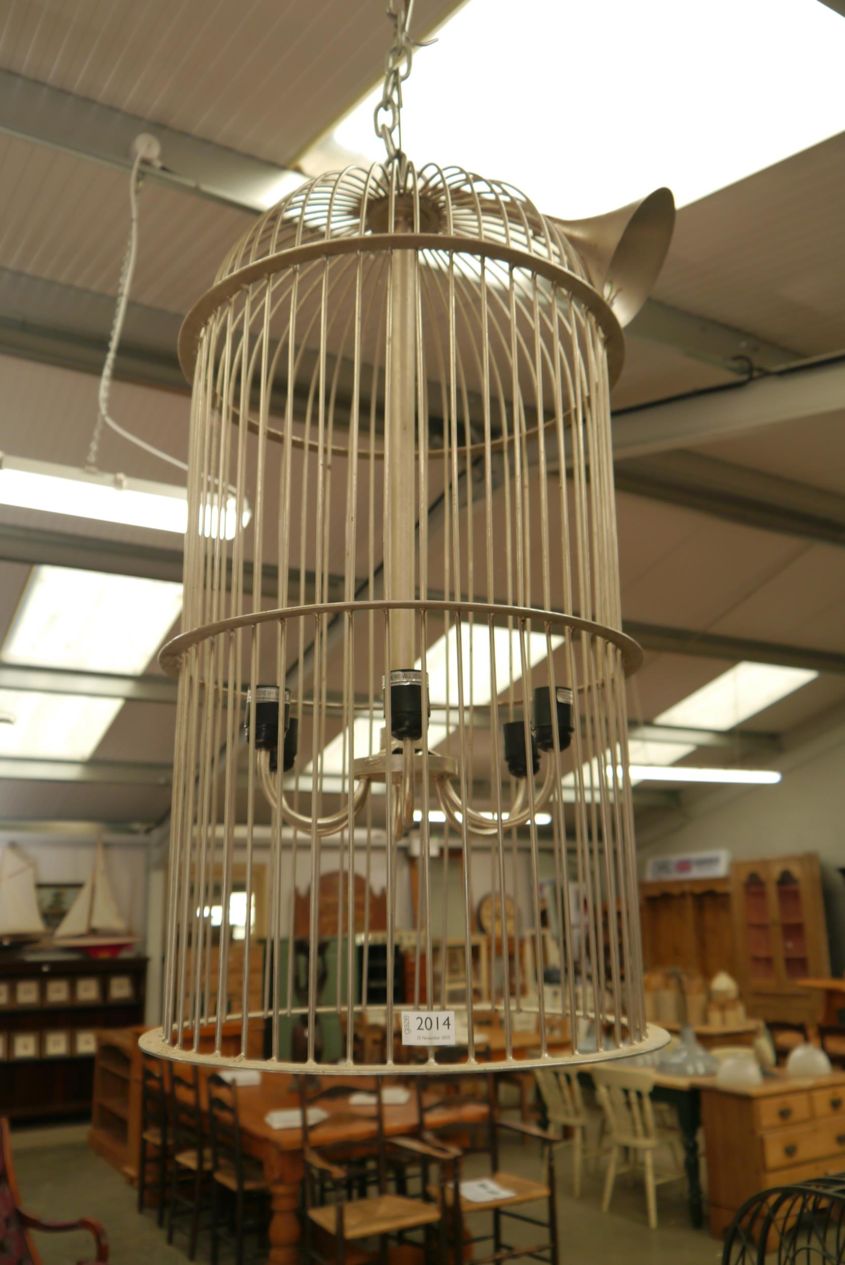 A metal bird cage lantern