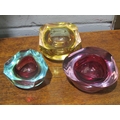 Three coloured glass dishes, purple, citrine and turquoise/purple (3)