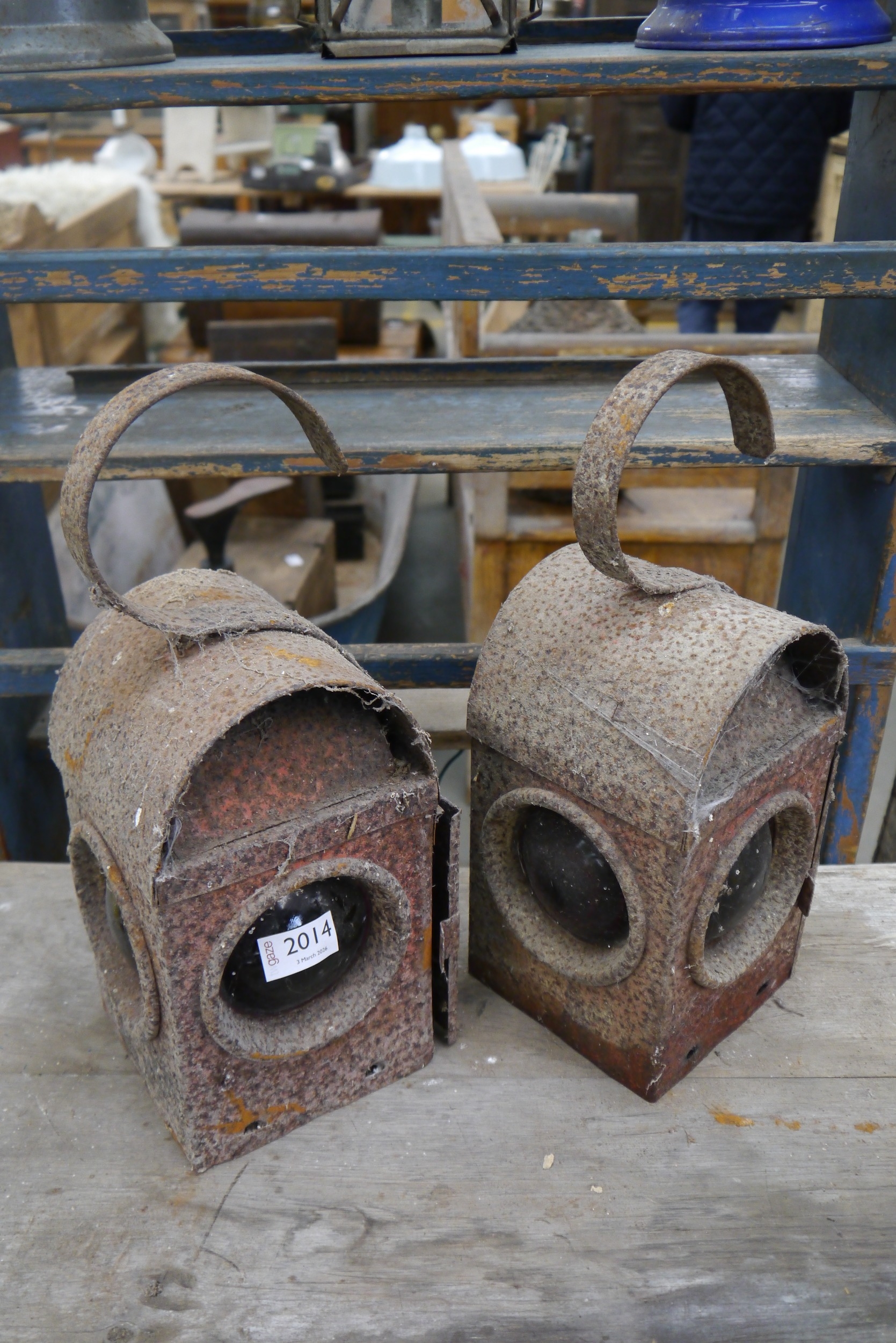 Two Paraffin road lamps