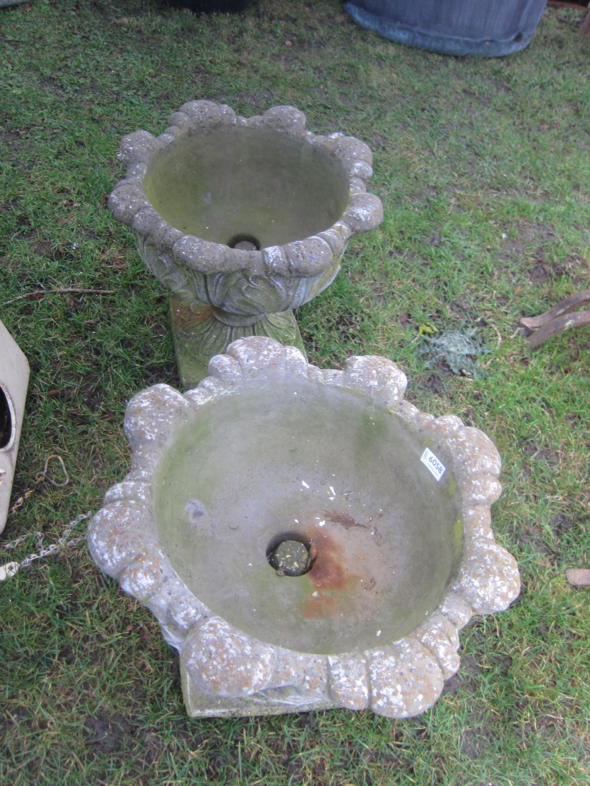 A pair of composition leaf form urns on socles
