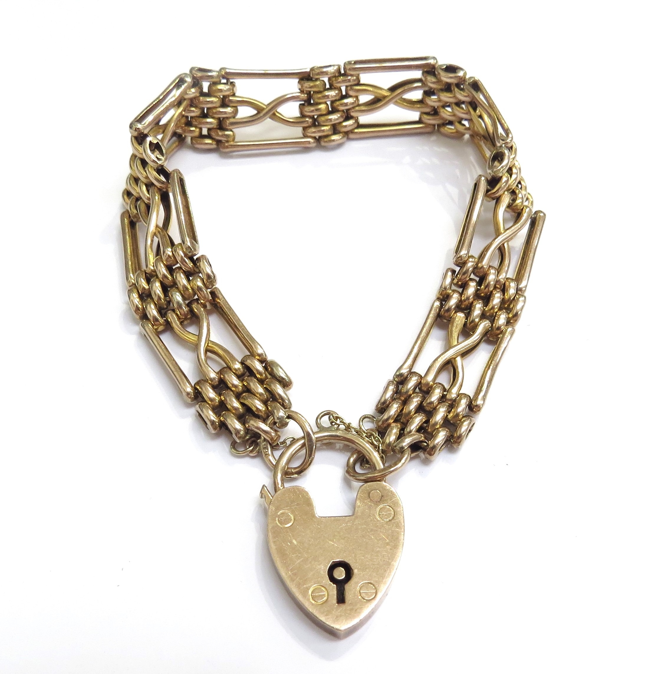 A 9ct gold gate bracelet with padlock clasp, 18cm long, 16.9g