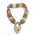 A 9ct gold gate bracelet with padlock clasp, 18cm long, 16.9...