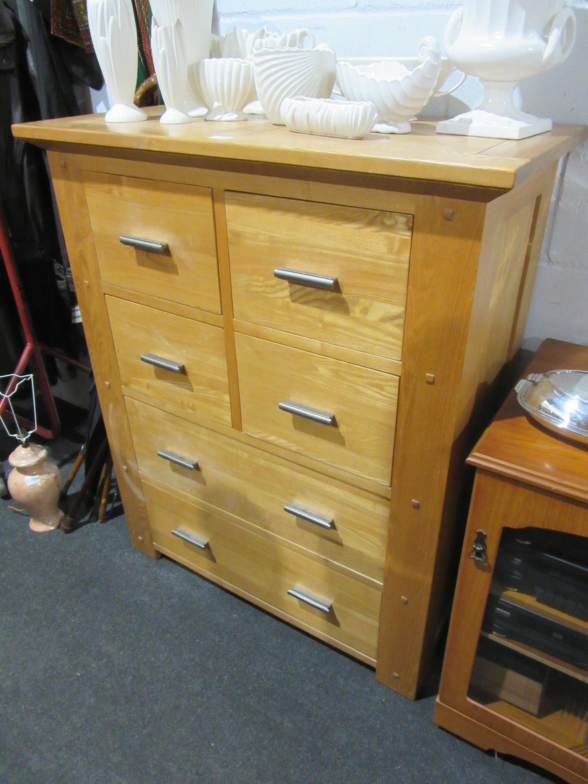 A Halo Living modern oak four drawer over two long drawer chest, 120cm tall x 100cm wide x 48cm deep