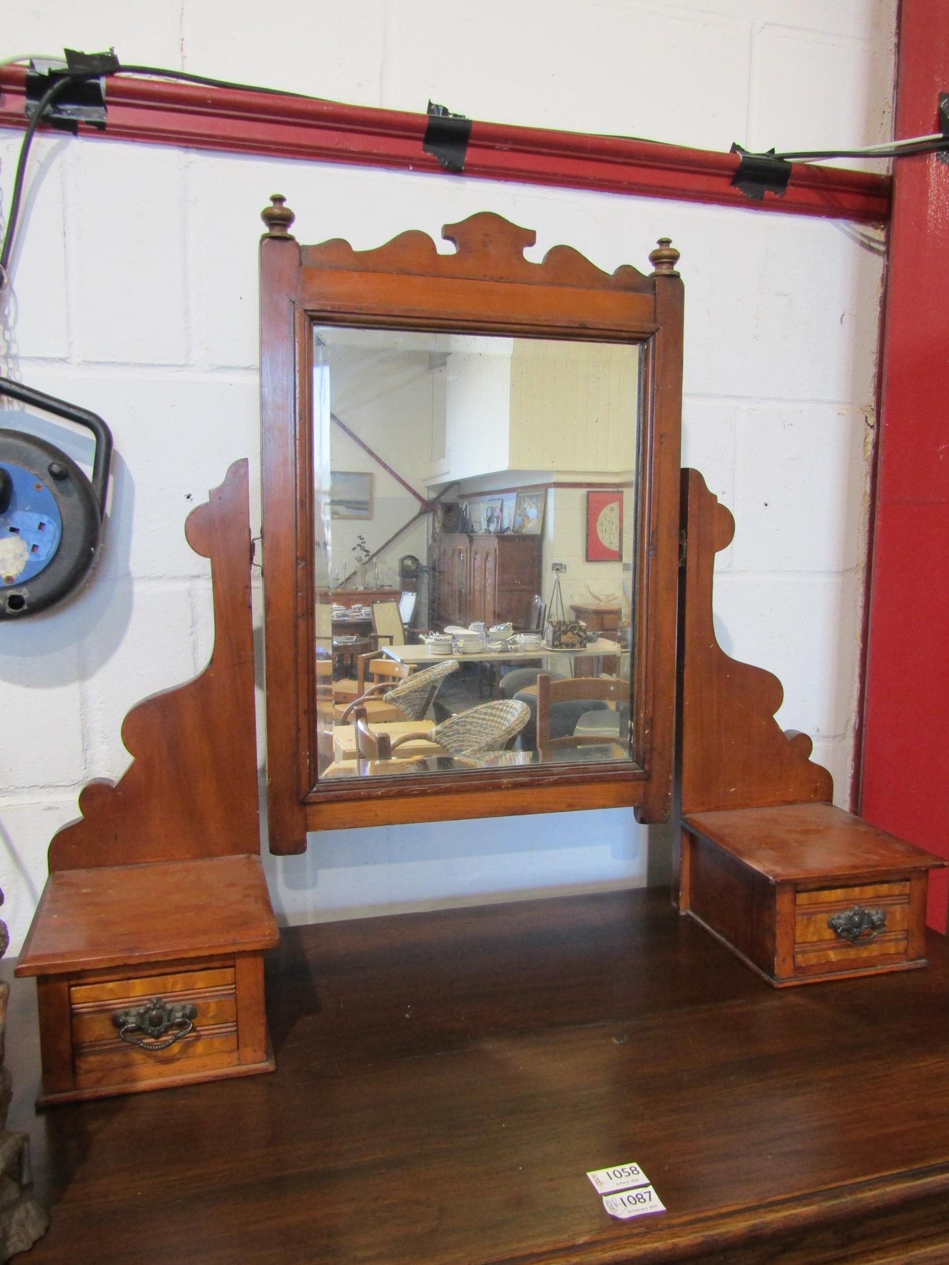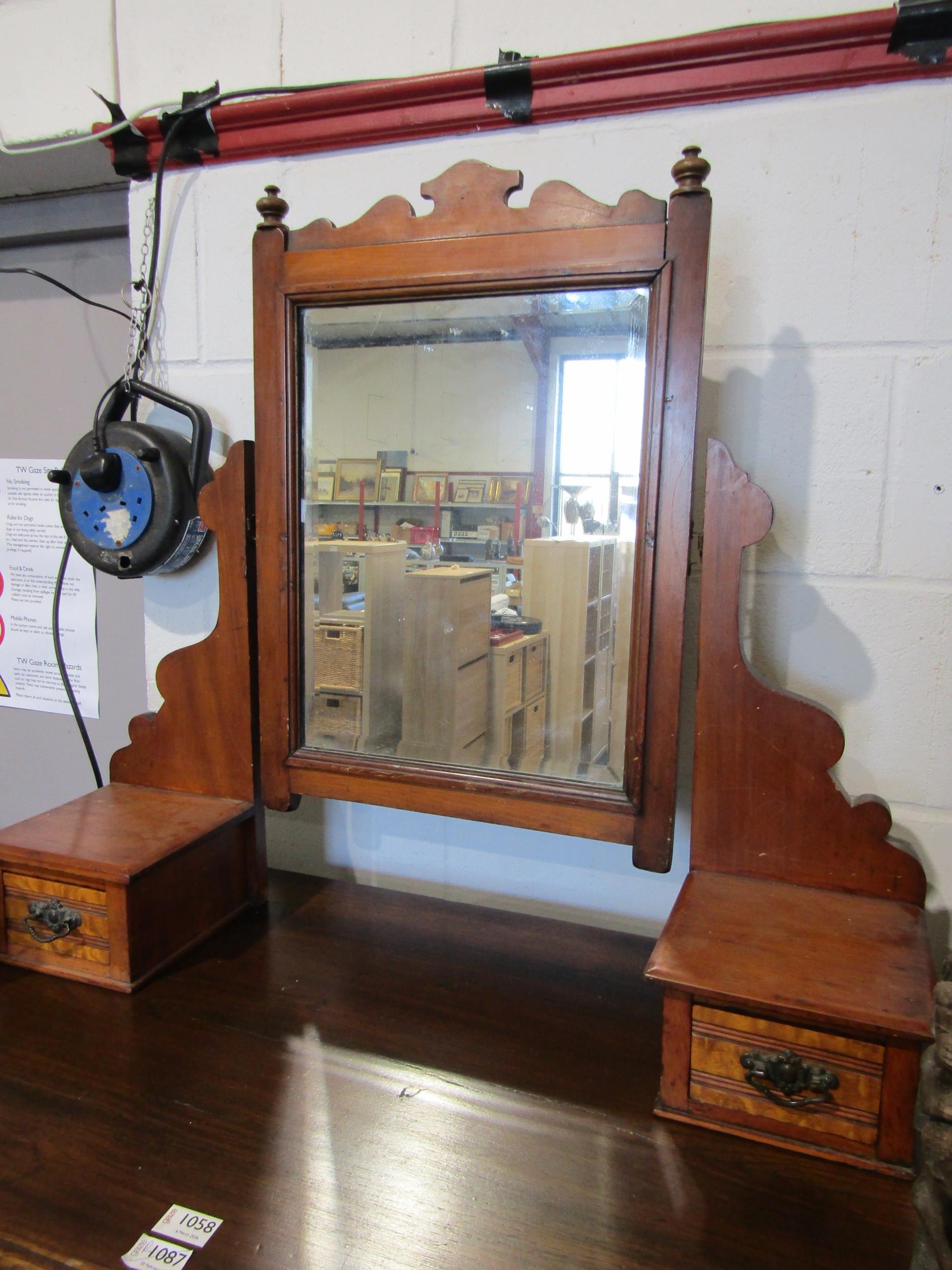 An Edwardian satinwood dressing table mirror with jewellery drawers either side