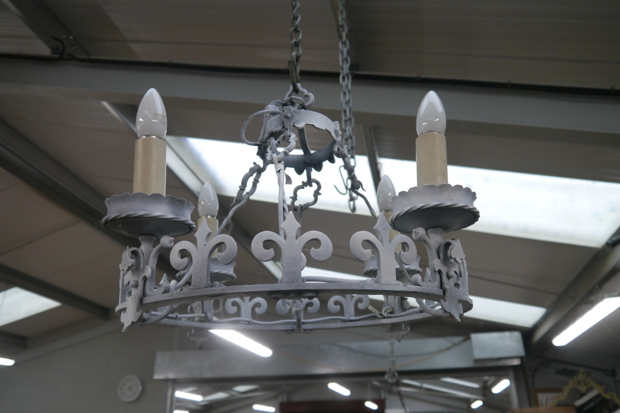 A blacksmith-made iron work electrolier, painted in white
