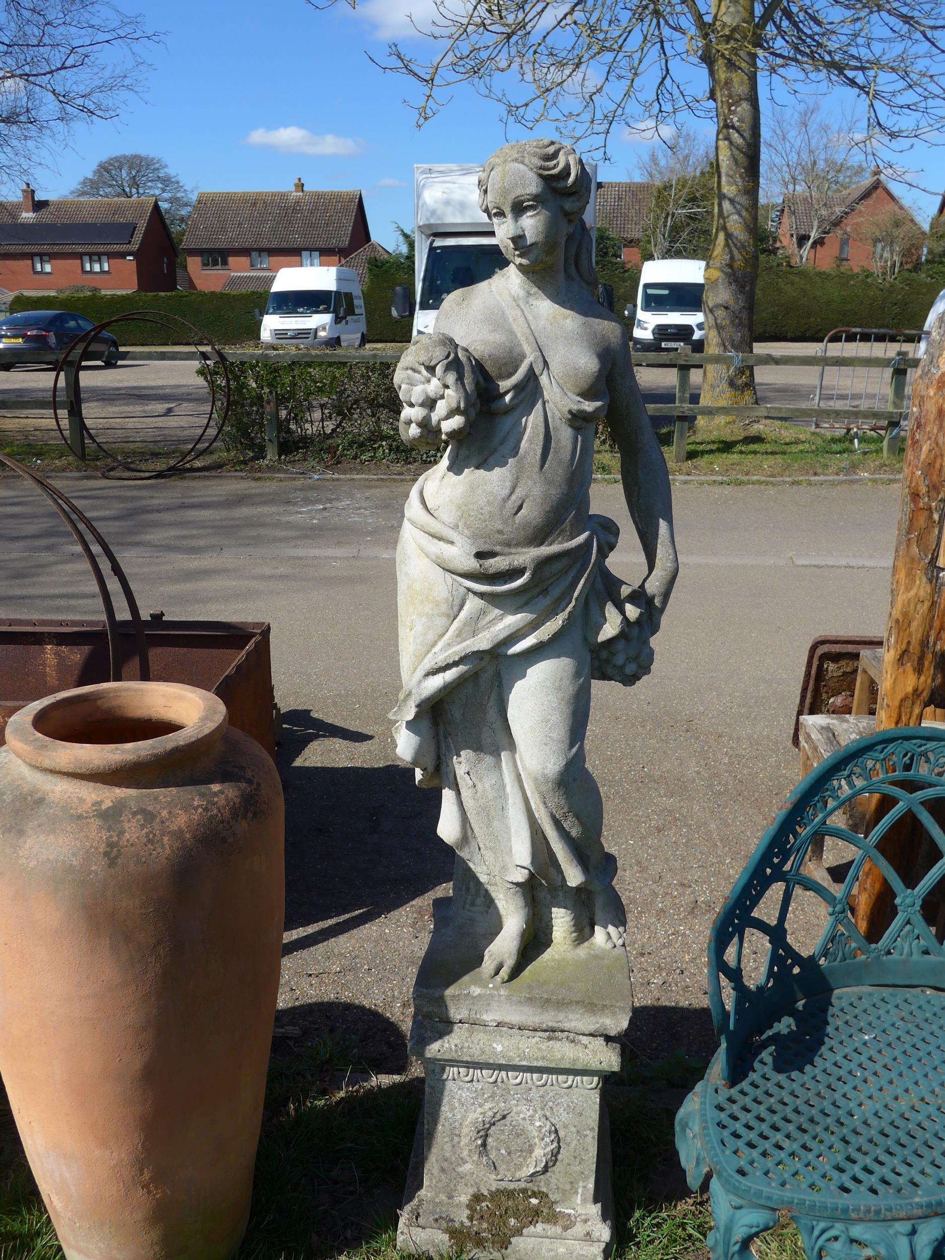 A composition figure of a maiden with grapes, on plinth, 158cm tall in total